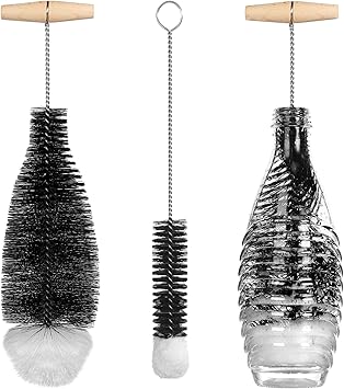 Flaschen reinigen war noch nie so einfach! Dieses 5-teilige Bürsten-Set macht jede Flaschen blitzsauber. Perfekt für Sodastream-Flaschen, aber auch für alle anderen Glasflaschen, Karaffen oder Trinkflaschen. Mit 33cm Länge erreicht die Bürste auch den Boden von hohen Flaschen! Die verschiedenen Größen passen für alle Flaschenarten - ob mit schmalem Hals oder breiter Öffnung. Aus hochwertigen Nylonborsten die kratzfrei reinigen und einem Holzgriff für perfekten Halt. Der Edelstahldraht rostet nicht und bleibt in Form. Einfach in warmem Wasser einweichen wenn sie abgeflacht ankommt - dann nimmt sie wieder ihre ursprüngliche Form an!