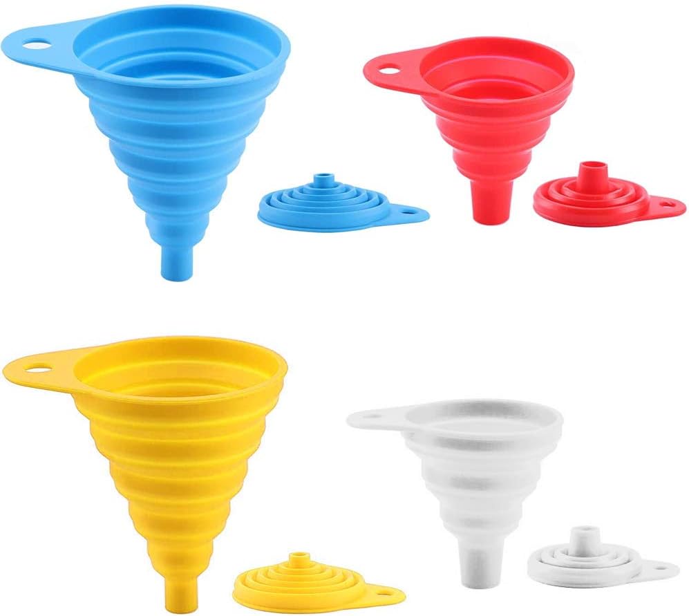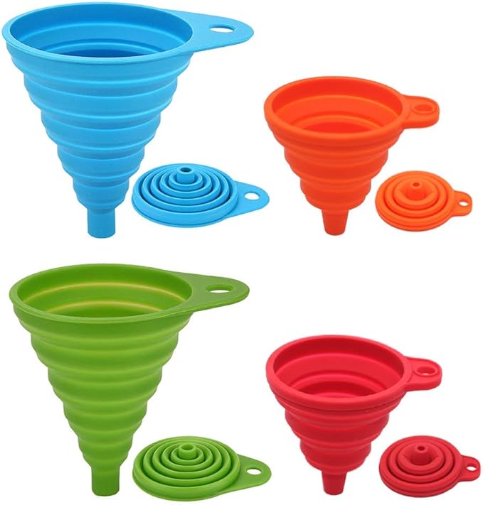 Praktische Helfer für jeden Haushalt! Dieses 2er Set mit faltbaren Silikon-Trichtern ist unverzichtbar in Küche, Garage und unterwegs. 🥄 Ein kleiner (9,4×10,5cm) und ein mittelgroßer Trichter (13×10,2cm) für alle Umfüll-Aufgaben. Aus lebensmittelechtem Silikon - hitzebeständig und geruchsneutral! 💧 Perfekt für Öl, Benzin, Mehl, Flüssigkeiten - einfach alles. Nach Gebrauch zusammenfalten und platzsparend verstauen. Leicht zu reinigen und spülmaschinenfest. Ideal für Camping, Auto oder die heimische Küche - diese Trichter sind immer griffbereit!