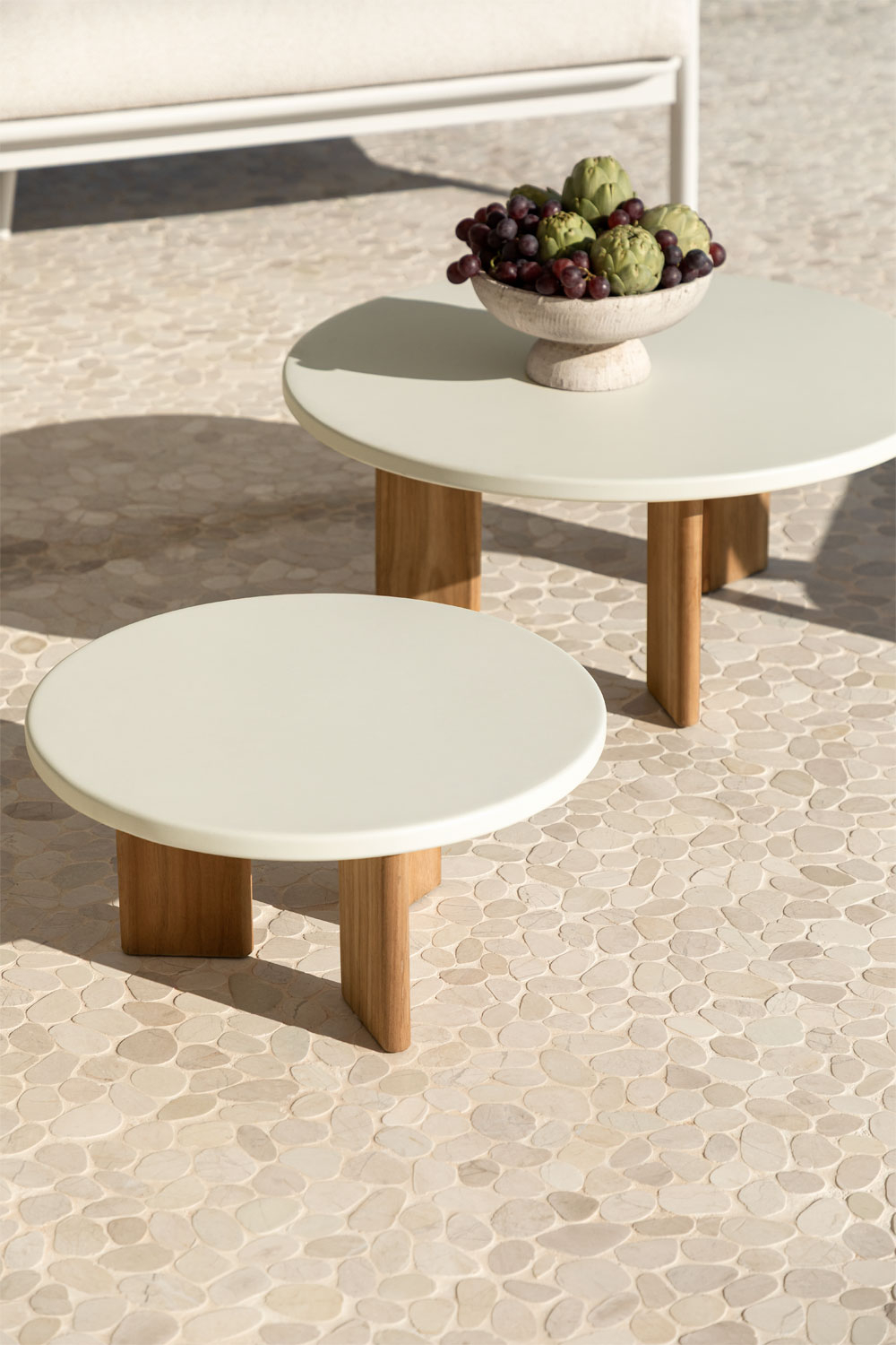 Suchst du praktische Tische für deine Terrasse? Dieses 2er-Set von Outsunny ist genau das Richtige! Zwei Couchtische in unterschiedlichen Größen - perfekt für Drinks, Snacks oder Deko.\\n\\nDie Tischplatten sind aus 0,5cm starkem, gehärtetem Glas. Sieht nicht nur edel aus, sondern ist auch super pflegeleicht. Einfach abwischen und schon glänzt es wieder. Und sicher ist es auch!\\n\\nDer Rahmen ist aus pulverbeschichtetem Aluminium - rostfrei und absolut witterungsbeständig. Ob Regen, Sonne oder Frost, diese Tische halten alles aus. Und sie tragen bis zu 30kg, also wirklich stabil.\\n\\nDas geniale Design: Die Tische sind stapelbar! Der kleinere passt unter den größeren, wenn du sie mal nicht brauchst. Spart mega Platz und ist praktisch für die Winterlagerung.\\n\\nMaße: Der große Tisch hat Ø48x43cm, der kleine Ø38x37cm. Also nicht zu groß, nicht zu klein - einfach perfekt für die meisten Terrassen und Balkone.\\n\\nMontage ist nötig, aber echt einfach. In wenigen Minuten stehen die Tische und bereichern deine Outdoor-Einrichtung.\\n\\nEinsatzmöglichkeiten ohne Ende: Terrasse, Balkon, Veranda, Wintergarten oder sogar im Wohnzimmer. Die schwarze Farbe passt zu fast jedem Stil.\\n\\nOb für gemütliche Abende, Gartenpartys oder einfach als Ablage - diese Tische sind echte Allrounder. Schick, praktisch und langlebig - was will man mehr?