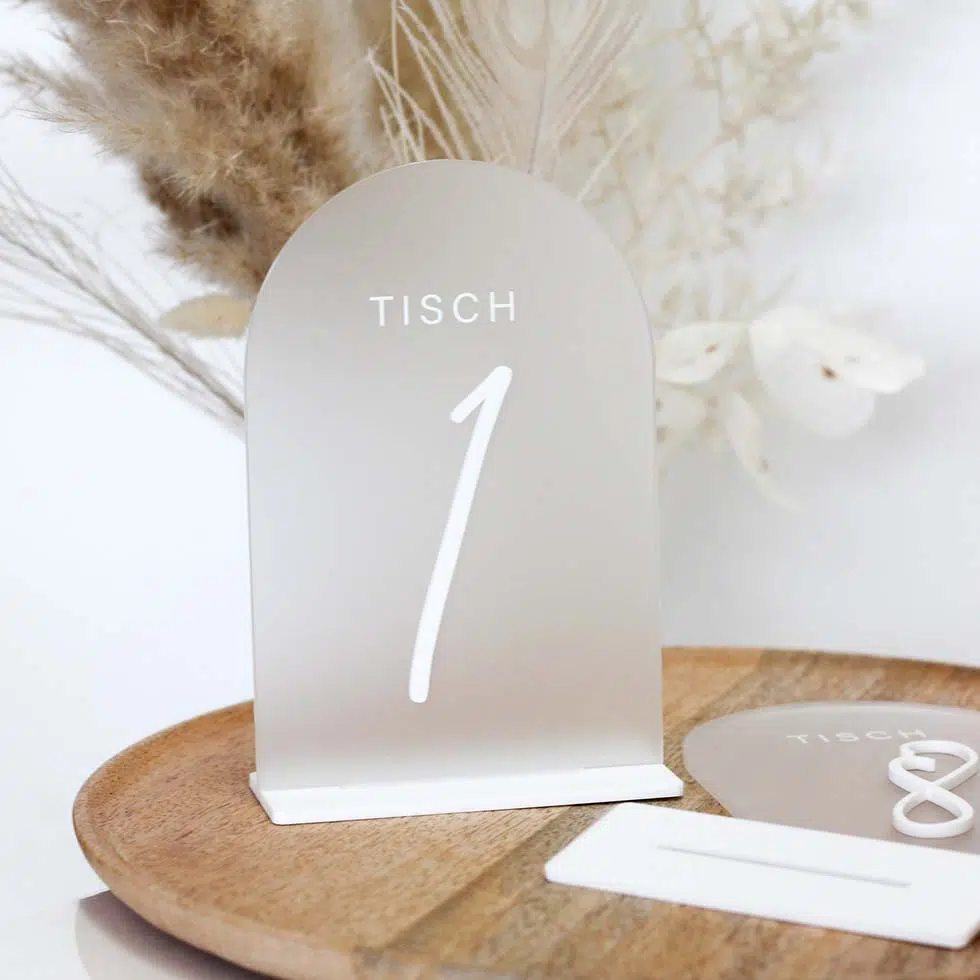 Perfekt für eure Hochzeit oder Party! Dieses 20er Set Acryl-Tischnummern macht jede Tischdekoration zum Hingucker! Die gefrosteten Oberflächen sehen edel und modern aus - einfach klasse! Maße 12,7x17,8cm (5x7 Zoll) - gut lesbar aber nicht zu aufdringlich. Die gewölbten Acrylschilder kommen mit mattiertem Standfuß - stehen stabil und sicher! Nummern 1-20 enthalten - ideal für mittlere Feiern! Das schlichte Design passt zu jedem Einrichtungsstil - ob rustikal, modern oder klassisch! Mehrfach verwendbar - einfach abwischen und für die nächste Party aufbewahren! Nicht nur für Hochzeiten - auch perfekt für Geburtstage, Jubiläen, Firmenevents oder Restaurant-Tische! Einfach aufstellen und sich über die professionelle Wirkung freuen! Die weiße Bedruckung auf mattiertem Acryl sieht einfach hochwertig aus! Macht aus jedem Event was Besonderes - ohne großen Aufwand!