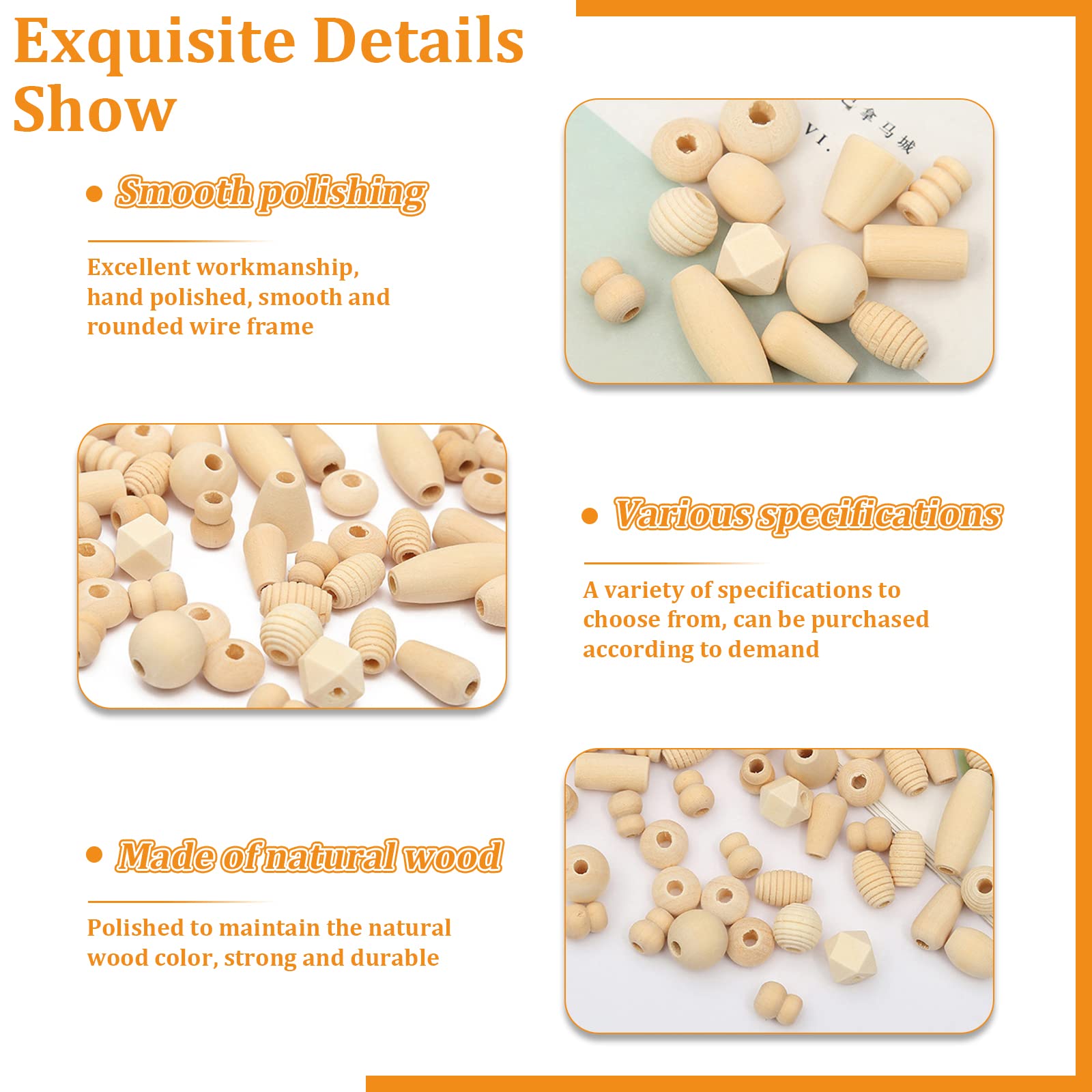 300g Natur Holzperlen Set - Gemischte Formen Zum Basteln Mit 4-5mm Loch