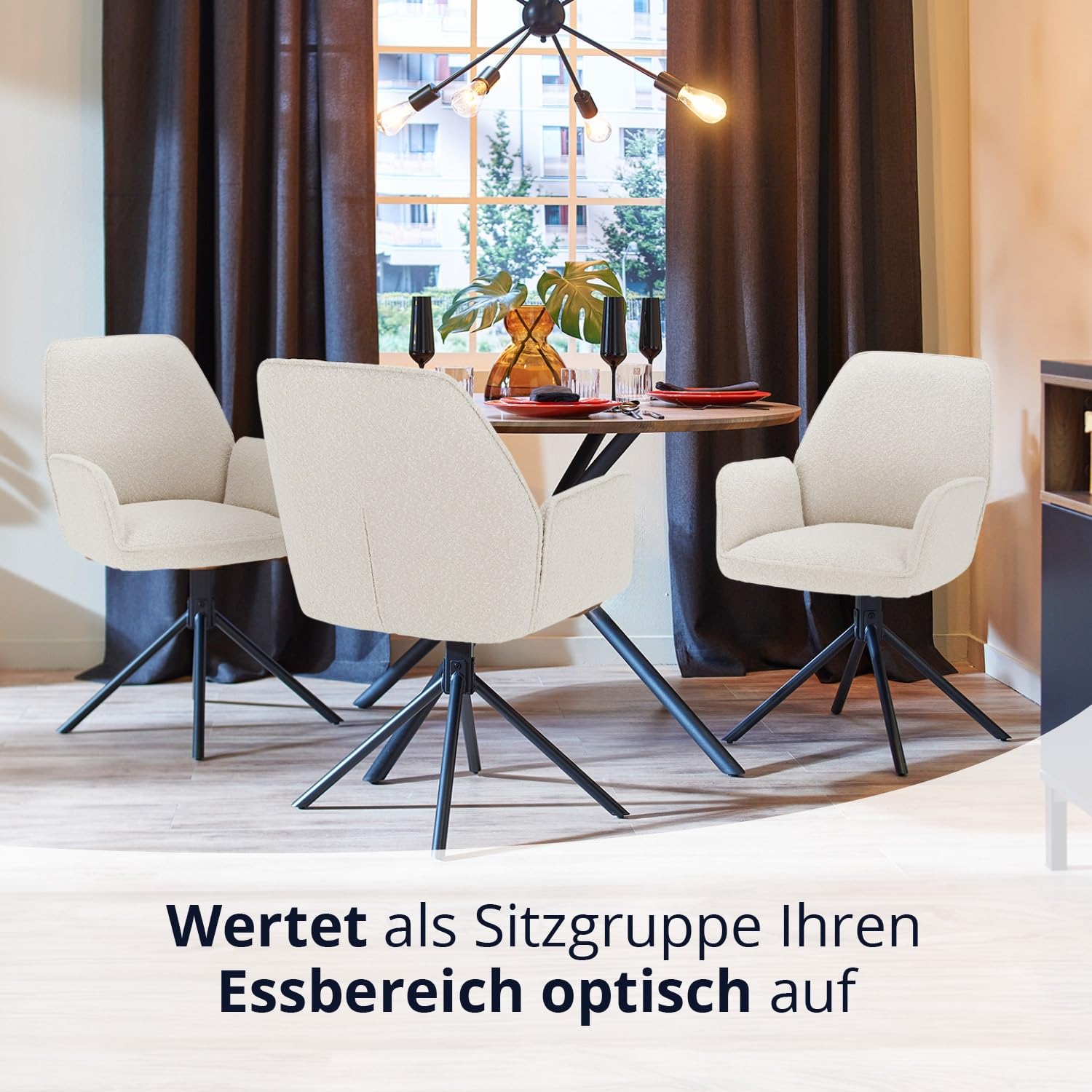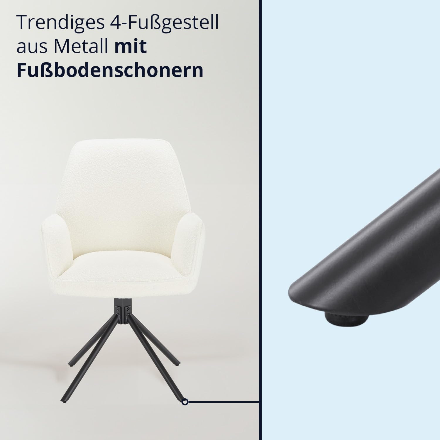 Absolute Hingucker für dein Esszimmer! Dieses 2er-Set Bouclé-Stühle kombiniert modernes Design mit maximalem Komfort. Die weiche Teddy-Stoff-Polsterung fühlt sich super luxuriös an. Besonders clever: Die hohle Rückenlehne sorgt für perfekte Belüftung - kein schwitziger Rücken mehr beim langen Sitzen! Die Sitzfläche ist 43,2x47 cm groß und 8,1 cm dick gepolstert - wie auf Wolken sitzen! Stabiles Metallgestell hält bis zu 136 kg aus. Einfache Montage mit beiliegendem Werkzeug. Rutschfeste Füße schützen deinen Boden. Die Gesamthöhe von 86,4 cm passt perfekt zu den meisten Esstischen. Nicht nur fürs Esszimmer super - auch als Gästestühle, fürs Homeoffice oder sogar im Café ein Blickfang! Modern, bequem und super stabil - was will man mehr? Einfach aufbauen und sich freuen wie schick das aussieht!