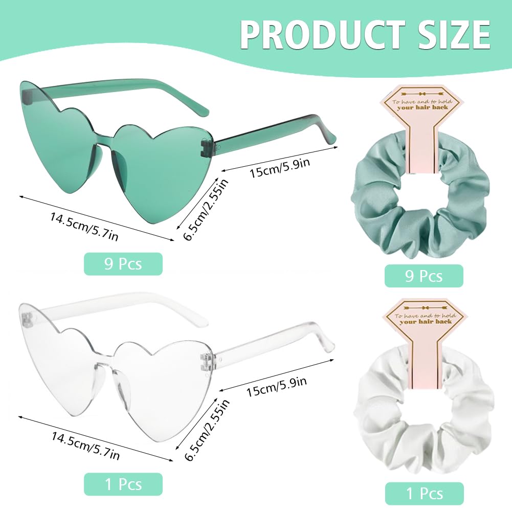 Mach die nächste Junggesellinnenabschied-Party zum absoluten Highlight mit diesem 20-teiligen JGA-Brillen-Set! Enthalten sind 10 herzförmige Sonnenbrillen (1 weiß, 9 grün) und 10 passende Armbänder.