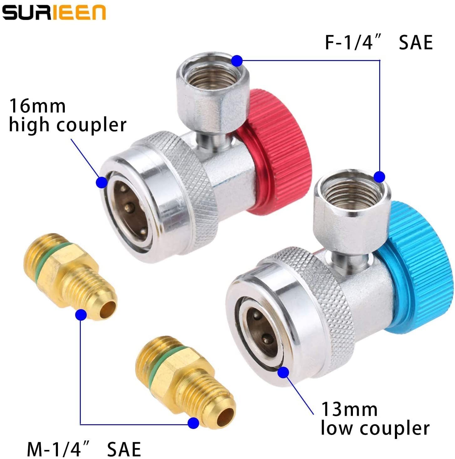 Das Set enthält beide Adapter: Rot für Hochdruck, Blau für Niederdruck. Hergestellt aus hochwertigem Messing für maximale Langlebigkeit und Zuverlässigkeit.