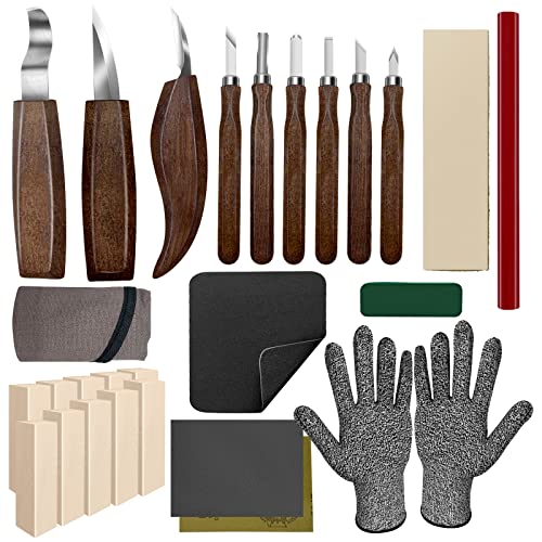 • 15-teiliges Schnitzwerkzeug Set - Holzschnitzmesser Mit Sandpapier & Box