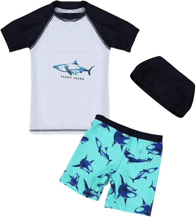 Perfektes Bade-Set für deinen kleinen Wasserratten! Dieses coole amiyan Set besteht aus Badeshirt, Badeshorts und praktischer Badekappe. Mit UPF 50+ Schutz - die Haut deines Kindes ist sicher vor der Sonne! Aus schnelltrocknendem Material (88% Polyester, 12% Spandex) das auch chlorbeständig ist. Der Rundhalsausschnitt macht das Anziehen super einfach. Die Hose hat ein Gummiband mit Kordelzug - passt sich perfekt an. Ideal für Strand, Schwimmbad oder Gartenparty. Dein Kind kann planschen, schwimmen und spielen, ohne dass du dir Sorgen um Sonnenbrand machen musst. Das maritime Design ist zeitlos schön. Einfach waschen und trocknen lassen - praktisch für den Sommer! Hol dir dieses komplette Set für unbeschwerten Badespaß!