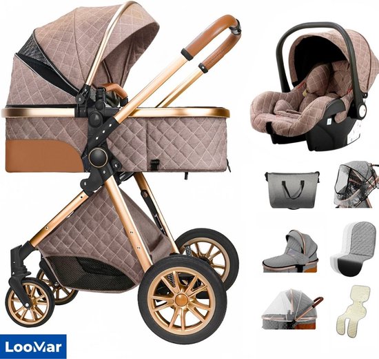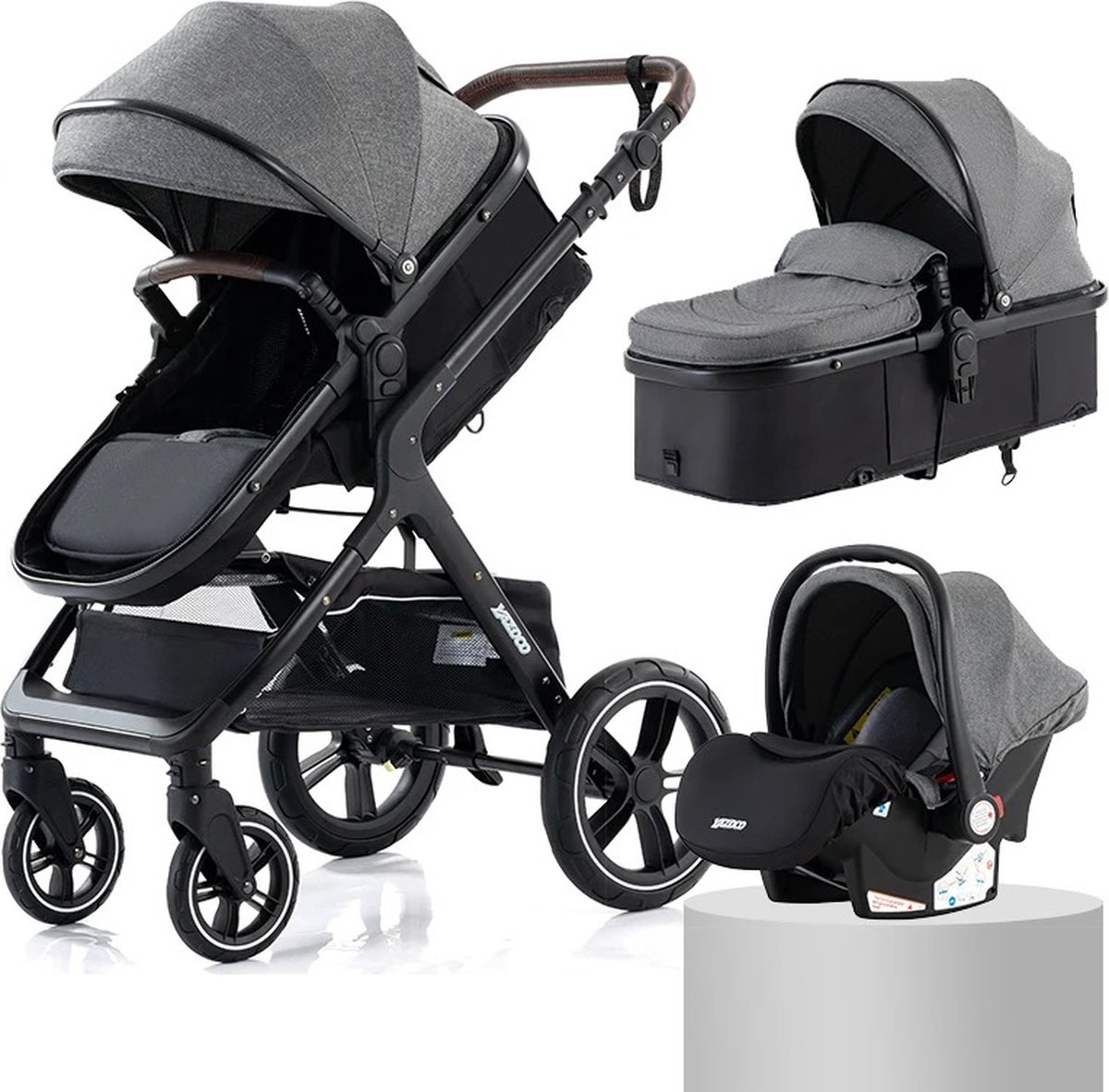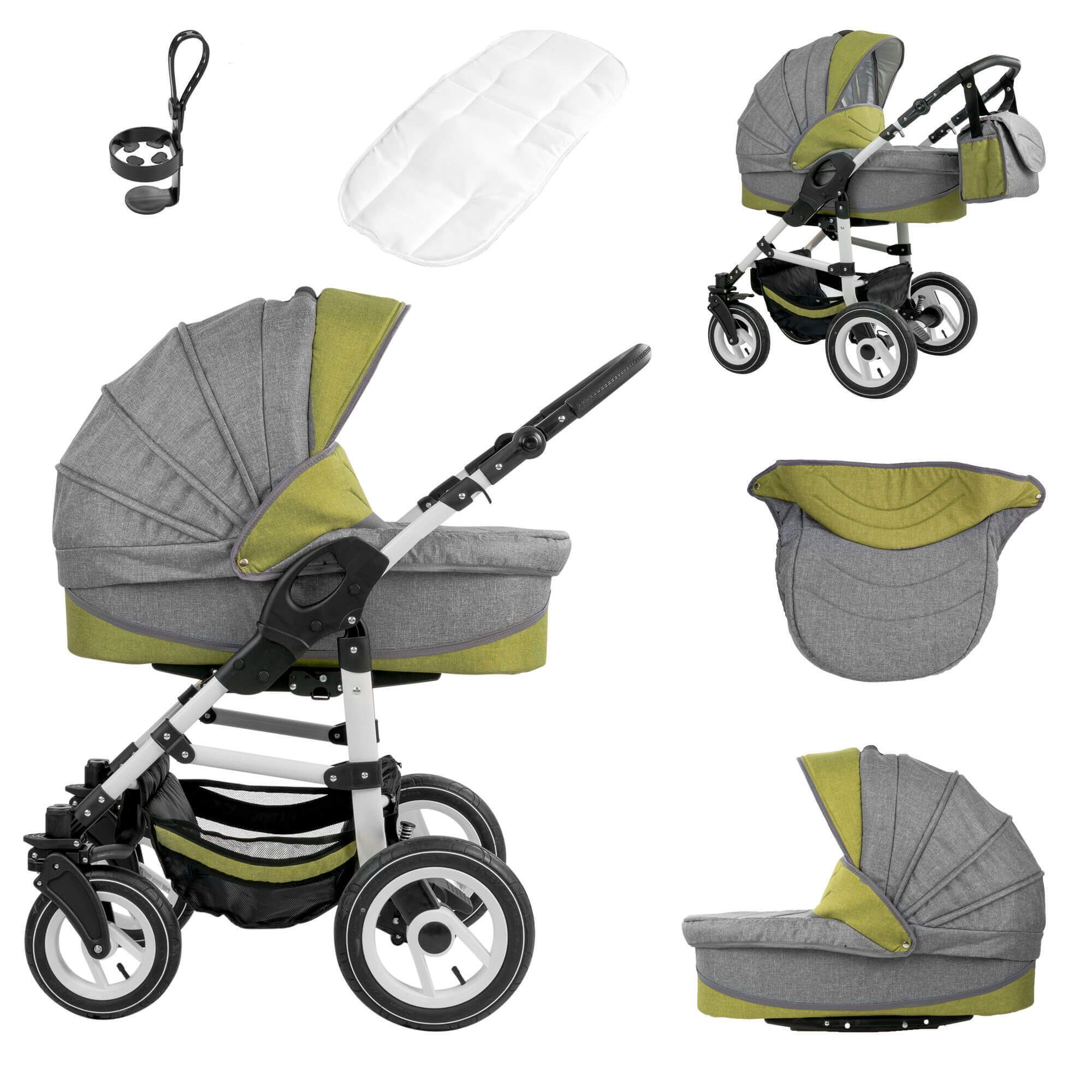 Der Alleskönner für junge Familien! Dieses 3-in-1 Kinderwagen-System wächst mit Ihrem Kind mit. Enthalten: Buggy, Wiege und Autositz - alles in einem! Aus robustem Aluminium mit verstellbarem Verdeck. In praktischem Khaki - stylisch und unisex. Der Sitz ist umkehrbar - Ihr Kind kann Sie ansehen oder die Welt entdecken. Verstellbare Liegepositionen für entspanntes Schlafen oder aufrechtes Sitzen. Inklusive 6 Gratis-Zubehörteilen: Mama-Tasche, Sitzkissen, Moskitonetz, Sommermatratze, Regenhaube und Füßlinge. Mit 5-Punkt-Sicherheitsgurt, Stoßdämpfern und Fußbremse. Für Kinder bis 50 lb (ca. 23 kg) geeignet. Wind- und wasserdichtes Design für jedes Wetter. Großer Stauraum und praktische Seitenfächer. Machen Sie jeden Spaziergang zum Komfort-Erlebnis!