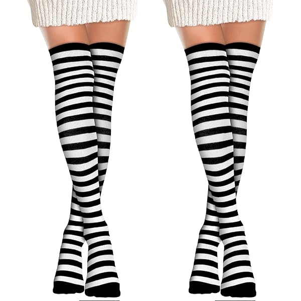 Das perfekte Set für stylische Looks! Dieses YUVKIN-Set enthält 1 Paar coole Overknee-Strümpfe (50cm lang) und 1 Paar fingerlose Handschuhe (31cm lang) in schwarz. Aus weicher Poly-Baumwoll-Mischung mit hoher Elastizität für optimalen Tragekomfort und Passform. Perfekt für Halloween-Partys, Cosplay-Events, Shows oder einfach als modisches Alltags-Accessoire. Die gestreifte Optik bringt Pep in jedes Outfit und die dickeren Materialien halten an kühleren Tagen schön warm. Einheitsgröße für verschiedene Körpergrößen - einfach anziehen und beeindrucken! Ideal für alle, die ihren Look aufpeppen wollen.