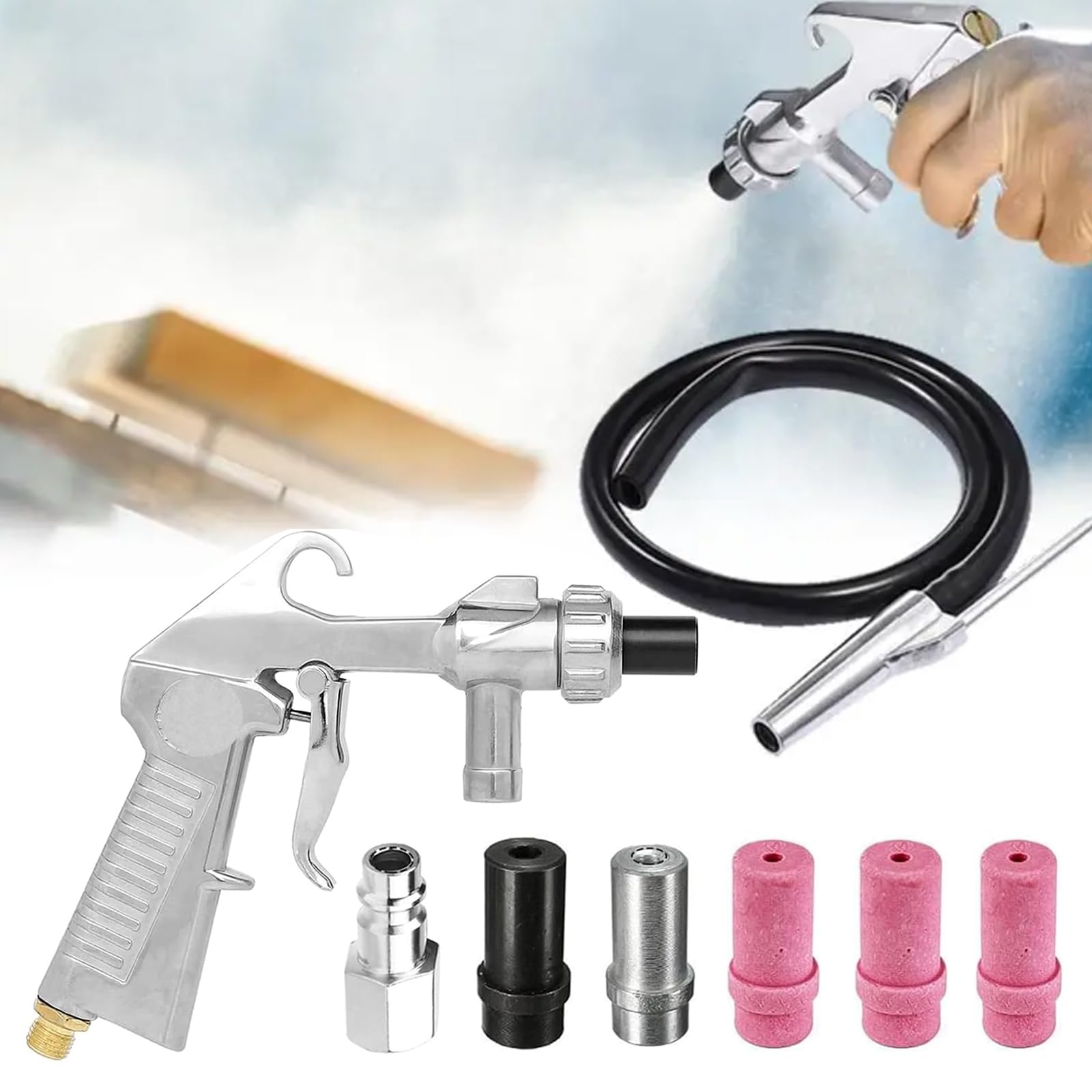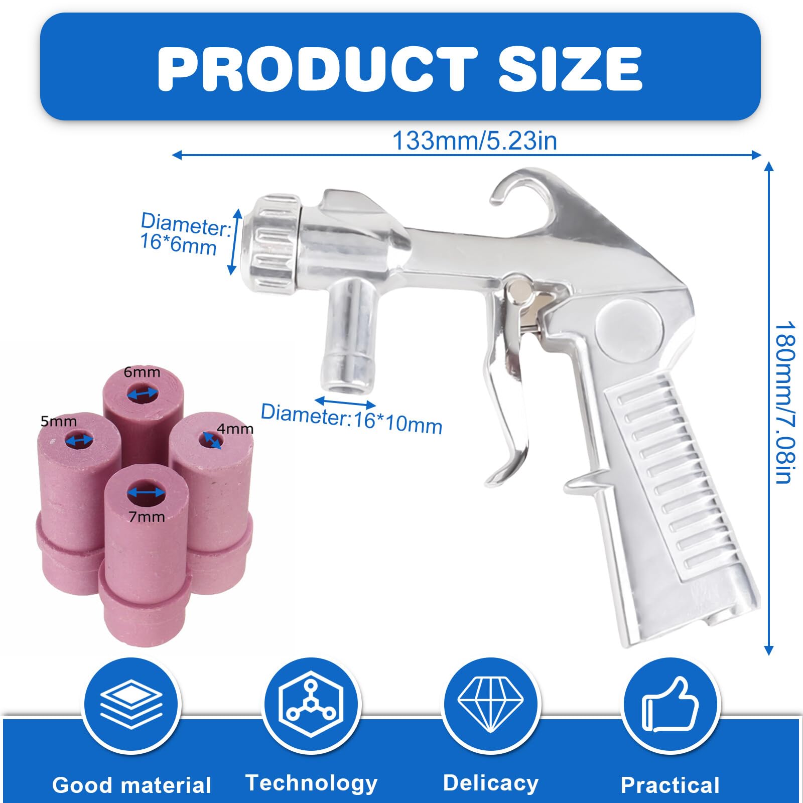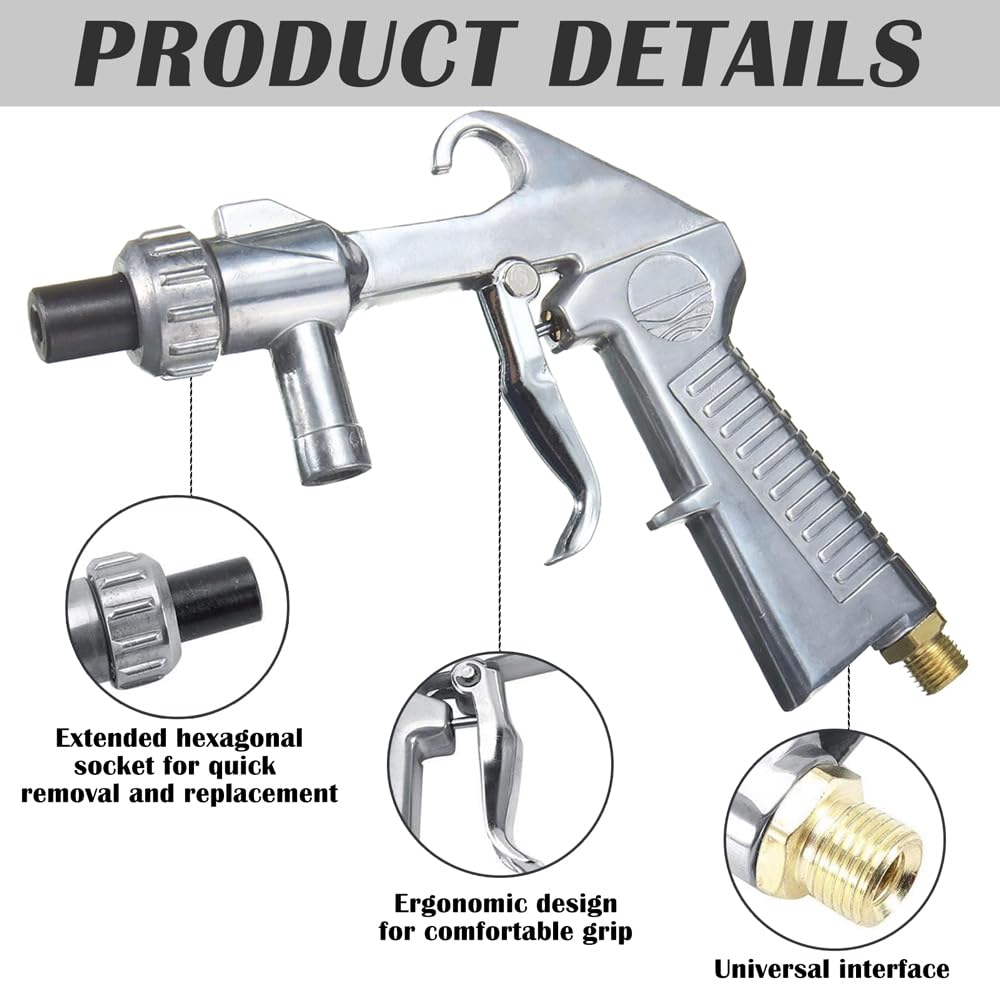 Perfekt für alle Heimwerker und Profis! Dieses komplette Sandstrahl-Set kommt mit allem, was du brauchst: 4 Keramikdüsen (4,5mm, 5mm, 6mm, 7mm), 1 Eisendüse (6mm), 2 Schnellkuppler und 1 Meter Gummischlauch. Aus hochwertiger Aluminiumlegierung mit spezieller Beschichtung - super robust und langlebig. Der ergonomische Griff liegt perfekt in der Hand. Mindestluftbedarf: 6 CFM bei 80 PSI. Ideal zum Entfernen von Rost, Farbe oder für Gravuren. Einfach an jeden handelsüblichen Kompressor anschließen und loslegen! Maße: 165x155mm, Gesamtgewicht: 892g. Perfekt für Bauarbeiten, Metallbearbeitung oder Autoreparaturen.