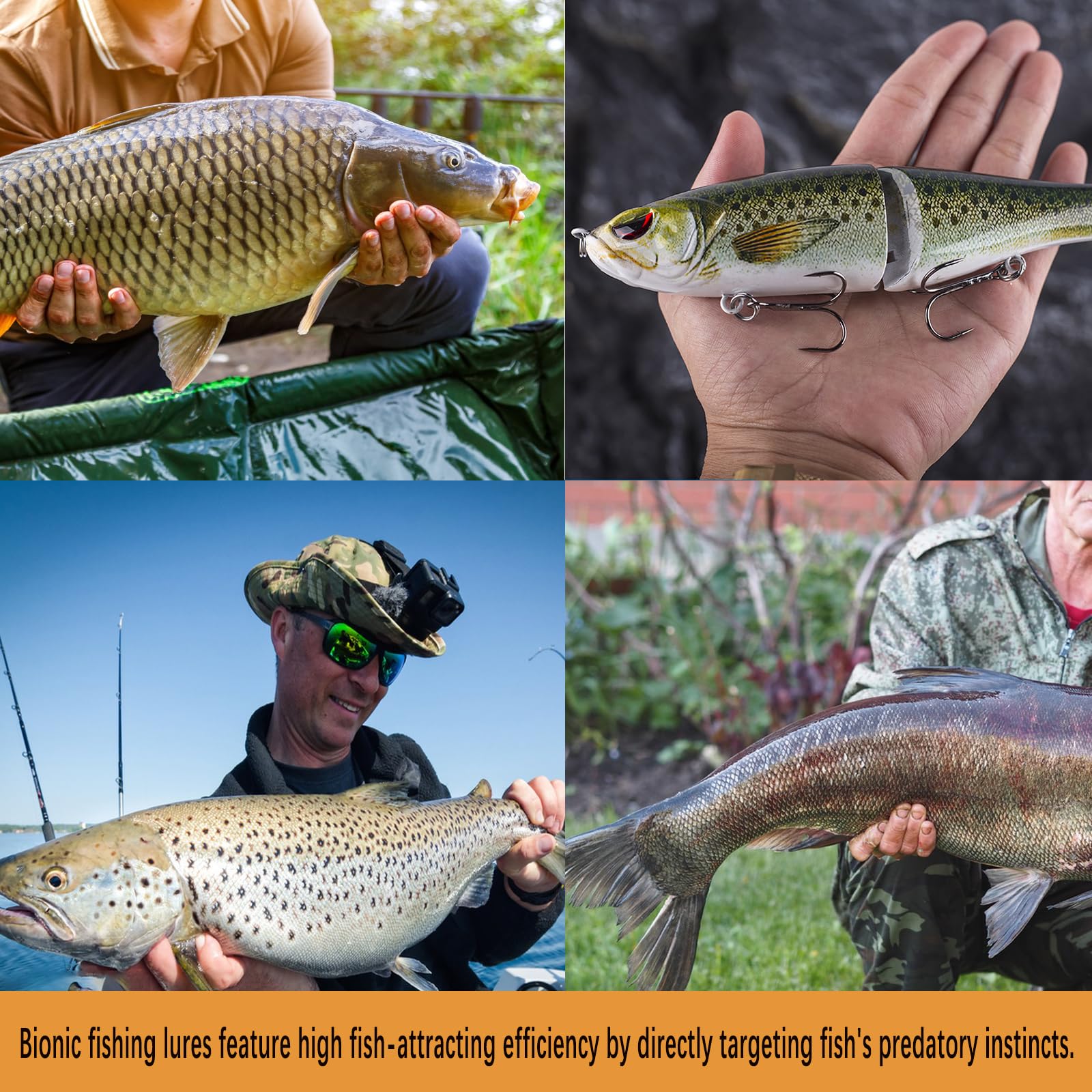 Angler aufgepasst! Dieses 7-teilige Köder-Set von TUXIBIN bringt jeden Fisch zum Bissen! Jeder Köder ist 8cm lang, wiegt 40g und sieht aus wie ein echter kleiner Fisch - mit lebensechten 3D-Augen und leuchtenden Farben! Aus hochwertiger Bleilegierung mit scharfen Drillingshaken aus Kohlenstoffstahl - die brechen und rosten nicht so schnell! Besonders clever: Die integrierten Wolframkugeln und die Magnetkraft-Vokalisierung locken die Fische magisch an! Egal ob du auf Barsch, Forelle, Lachs oder Hecht ansitzt - in Süßwasser oder Salzwasser, vom Boot oder vom Ufer aus - diese Köder bringen Erfolg! Die sich verjüngende Form und hohe Reflexion wirken auch bei schlechtem Licht oder in der Tiefsee! Einfach auswerfen und den Biss genießen!