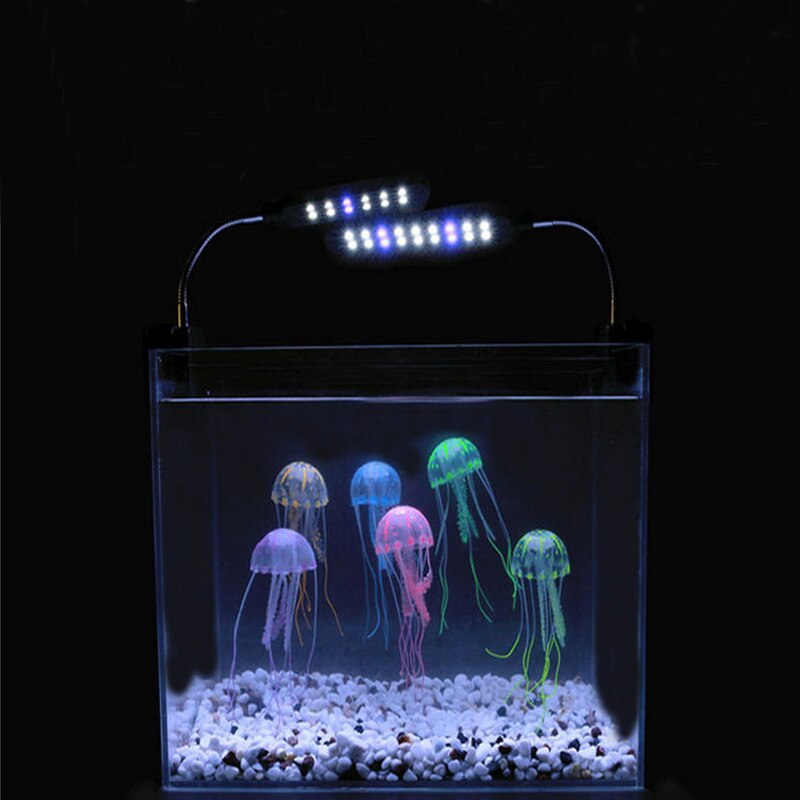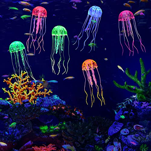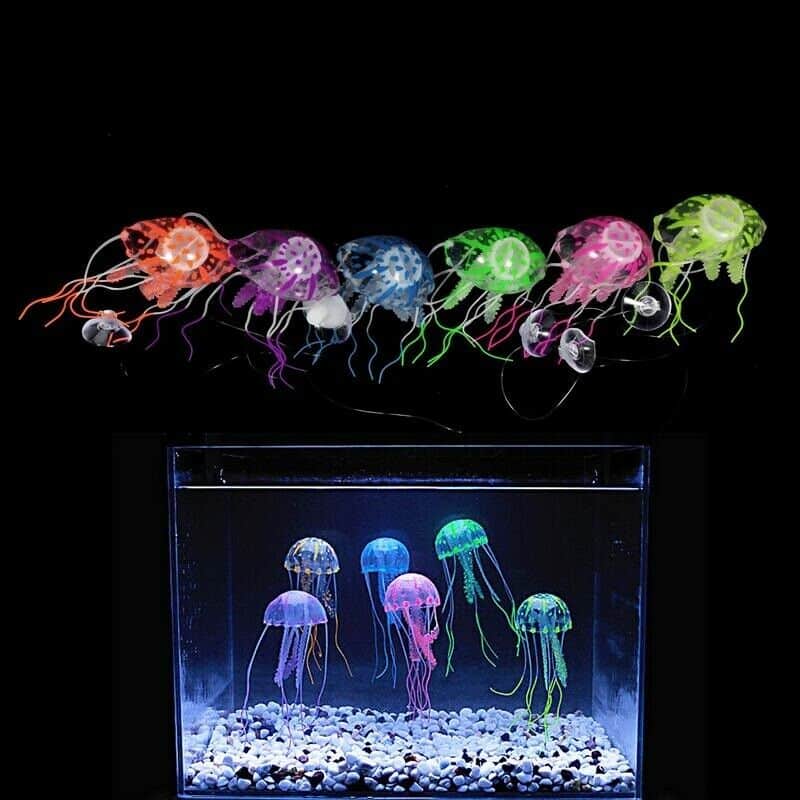 Verwandle dein Aquarium in eine magische Unterwasserwelt! Dieses Petalum 6er Set mit leuchtenden Quallen bringt Farbe und Leben in dein Aquarium. Jede Qualle ist ca. 18cm lang und 5,5cm breit - perfekte Größe für die meisten Aquarien. Hergestellt aus hochwertigem, umweltfreundlichem Silikon - absolut ungiftig, geruchlos und sicher für deine Fische. In 6 verschiedenen Farben: Blau, Lila, Grün, Orange, Rosa und Gelb. Der besondere Clou: Unter actinic Beleuchtung (blaues oder lila Licht) leuchten die Quallen in magischen Farben! Mit starken Saugnäpfen für sicheren Halt an Felsen oder Aquariumboden. Weiches Silikon bewegt sich elegant mit dem Wasserfluss - wie echte Quallen! Einfach zu installieren mit verstellbaren, unsichtbaren Fäden. Keine Reinigung oder Fütterung nötig - spart Zeit und Aufwand. Im Lieferumfang: 6 bunte Quallen, 6 Saugnäpfe und 6 unsichtbare Seile. Schaffe eine traumhafte Unterwasserlandschaft ohne lebende Quallen halten zu müssen. Einfach wunderschön!