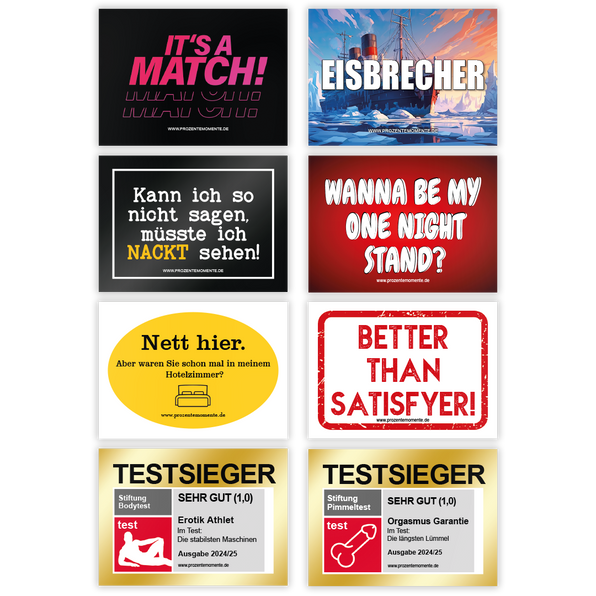 Mach jede Party zum Legendären Event mit diesem ultimativen Malle-Sticker-Set! Enthalten sind 60 Aufkleber in 6 verschiedenen, urkomischen Designs - perfekt also für größere Gruppen. Die Sticker sind ideal für Junggesellenabschiede, Geburtstagsfeiern oder den nächsten Mallorca-Urlaub. Einfach auf Koffer, Trinkflaschen, Handys oder T-Shirts kleben und schon bist du Teil der Party! Die Motive sind typisch mallorquinisch und sorgen garantiert für Lacher. Dank wasserfester und UV-beständiger Beschichtung halten die Sticker auch wildeste Feiern problemlos aus. Die praktische Größe von 8,5x5,5cm ist ideal für verschiedene Untergründe. Einfach ablösen, aufkleben und Party machen! Perfekt als Mitbringsel oder für Trinkspiele - mit diesen Stickern fällst du auf!