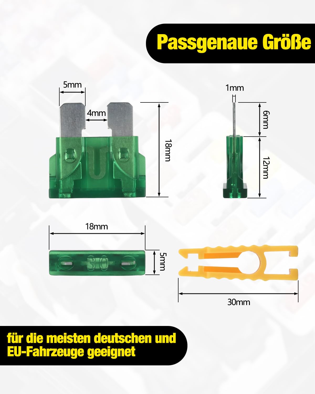 Immer die passende Sicherung parat! Dieses 60-teilige Set enthält alle gängigen Mini-Flachsicherungen von 5A bis 30A - bunt sortiert für bessere Übersicht. Inklusive praktischem Sicherungszieher für einfachen Wechsel. Aus robustem Kunststoff und Zinklegierung, schützt deine Fahrzeugelektrik zuverlässig. Passt für Pkw, Lkw, Motorrad, Wohnmobil und mehr. Nie wieder mit defekten Sicherungen rumlaufen! Einfach die passende Stärke raussuchen und austauschen - dein Auto sagt Danke!