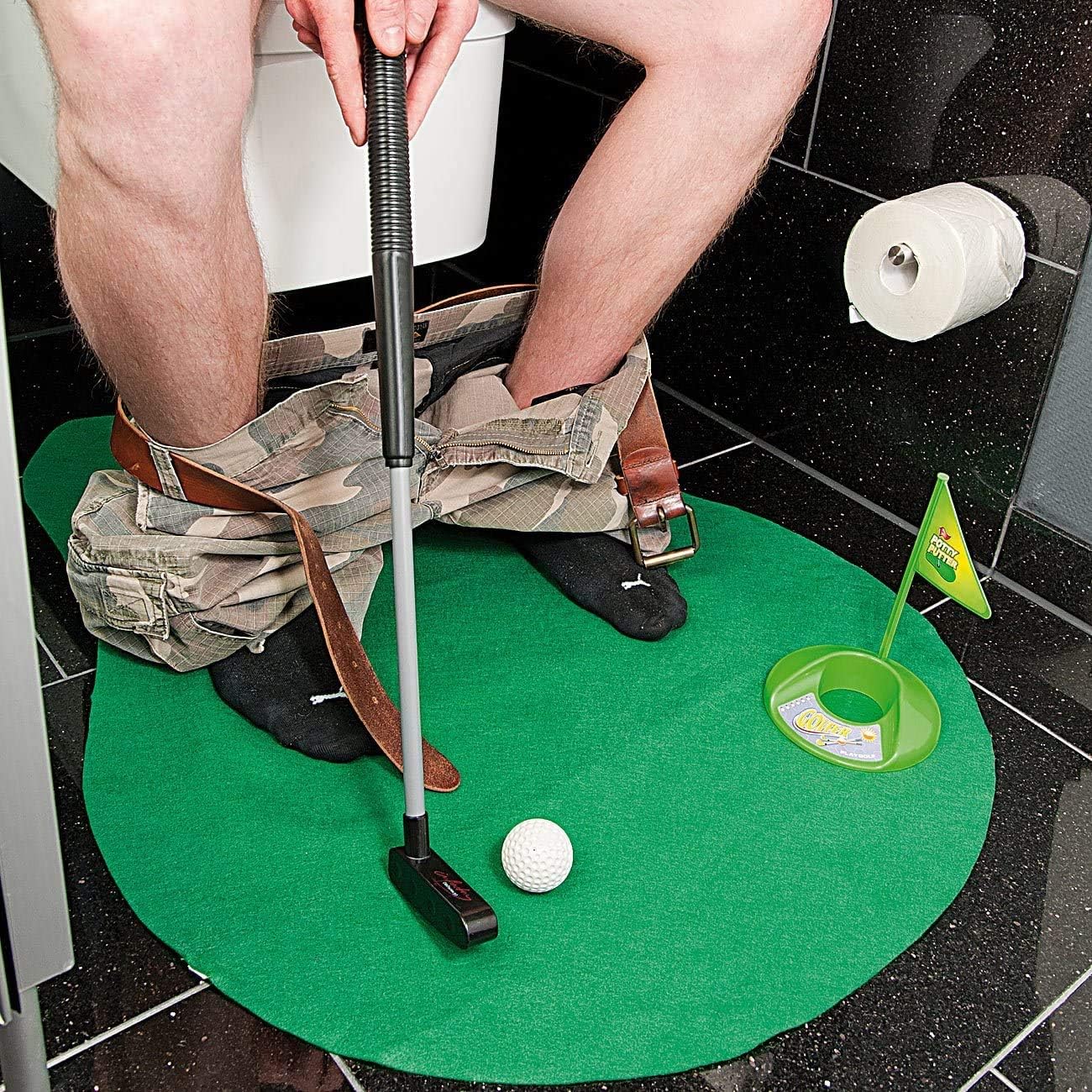 Golfen auf dem stillen Örtchen? Mit diesem urigen WC-Golf-Set wird jedes Badezimmer zum Minigolf-Paradies! Das komplette Set enthält alles, was du für den Putting-Spaß brauchst: eine robuste PVC-Matte, zwei Golfbälle, einen Flaggenstock, einen Putter und einen praktischen Türhaken zur Aufbewahrung. Perfekt für Golf-Enthusiasten, die auch zu Hause nicht auf ihr Hobby verzichten wollen. Die kompakte Verpackung (5,5x15x43cm) passt in jedes Badezimmer und der Türhaken sorgt für platzsparende Lagerung. Ob alleine zum Üben oder mit Freunden zum Wettbewerb - dieses Set bringt garantiert jede Menge Spaß! Ein absolut geniales Geschenk für alle Golf-Fans - ob zum Geburtstag, Vatertag oder einfach mal so. Putting-Paradies inklusive!