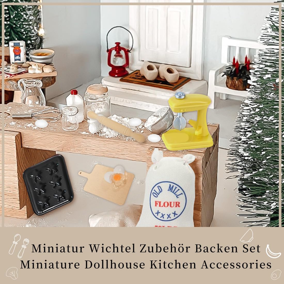 Stell dir vor wie deine Wichtel emsig Plätzchen backen - mit diesem Set wird diese niedliche Szene Wirklichkeit! Perfekt für Puppenhaus-Liebhaber, Miniatur-Fans oder als besonderes Geschenk zur Weihnachtszeit.