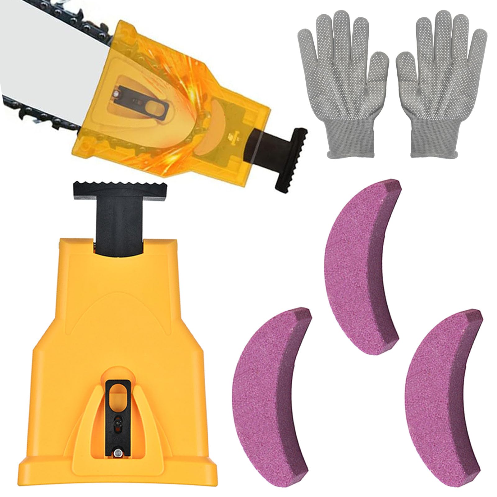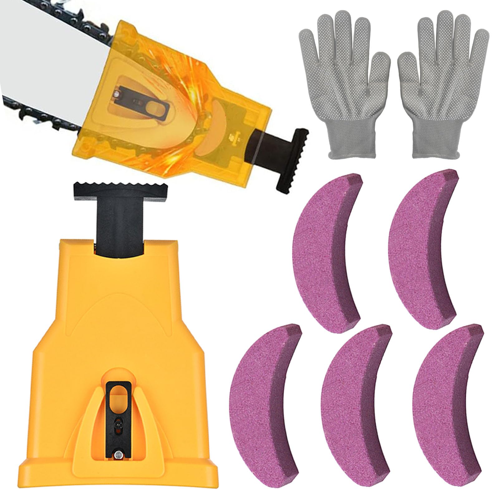 Is' deine Kettensäge schon wieder stumpf? Mit diesem praktischen Schärfgerät hast du das Problem im Handumdrehen gelöst! Das Set kommt mit allem, was du brauchst: 1x Schärfgerät, 10x Schärfsteine und sogar ein Paar Handschuhe für sichere Arbeit. Egal ob 14 Zoll, 16 Zoll, 18 Zoll oder 20 Zoll - das Universal-Tool passt zu den meisten Kettensägen mit Flachzahn und 2-Loch-Schiene. Einfach die Kettensäge einspannen, den Schärfstein ansetzen und mit wenig Druck schärfen. Deine Hände berühren den Stein nicht, also keine Sorge vor Verletzungen. Das Teil ist superleicht (nur 292g) und passt in jeden Werkzeugkoffer. Perfekt für unterwegs im Wald oder daheim in der Garage. So macht Kettensägen schärfen richtig Spaß - und deine Säge schneidet wieder wie neu!