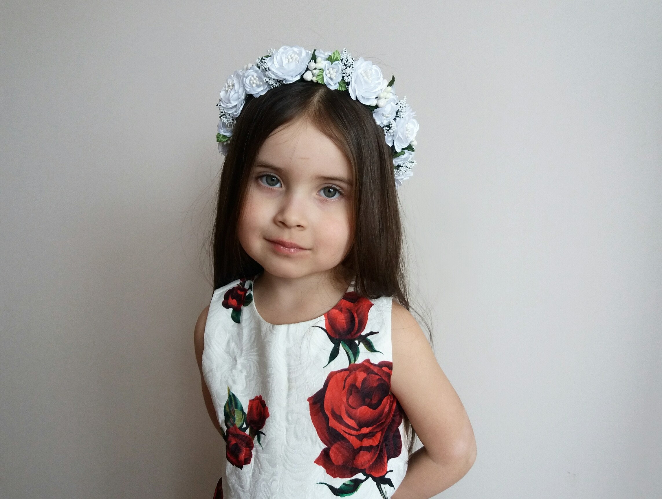 Wow, dieser Blumenkranz ist einfach nur traumhaft! Im Set mit passendem Blumen-Armband - perfekt abgestimmt! Aus hochwertigen Stoffblumen und Kunststoffzweigen - sieht aus wie echte Blüten! Die weißen Rosen mit den zarten grünen Blättern wirken frisch und romantisch! Das verstellbare Band passt sich jedem Kopfumfang an - kein Verrutschen! Perfekt für Hochzeiten, Feste, Fotoshootings oder Festival! Einfach umlegen, Band anpassen und du siehst aus wie eine Elfe! Das Armband komplettiert den Look perfekt! Ob als Braut, Brautjungfer oder einfach für besondere Anlässe - dieser Blumenkranz macht dich zum absoluten Hingucker! Die Blumen verblassen nicht - du hast lange Freude daran! Ein wunderbares Geschenk für Freundinnen, Schwestern oder einfach für dich selbst! Einfach anlegen und strahlen!