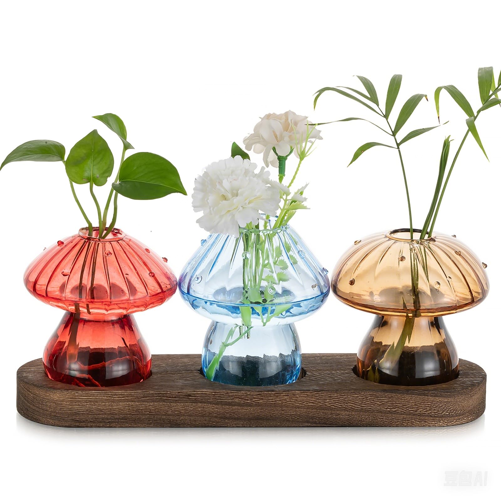 Dieses süße Vasen-Set bringt sofort Charme auf deinen Tisch! Fünf einzigartige Mini-Glasvasen in verschiedenen Formen kommen zusammen mit einem rustikalen Holztablett - einfach niedlich! Aus robustem Sodalime-Glas gefertigt, sind die Vasen stabil und kippen nicht so leicht um. Das Holztablett ist wasserdicht und bietet einen perfekten Untergrund. Ob mit frischen Blumen, Trockenblumen oder einfach solo als Deko - diese Vasen machen in jedem Raum eine gute Figur. Perfekt fürs Wohnzimmer, Büro, Küche oder als Tischdeko für besondere Anlässe wie Hochzeiten, Geburtstage oder Weihnachten. Im Bohème-, Vintage- oder Modern-Stil - diese Vasen passen überall dazu. Jede Vase ist sicher in Styropor verpackt, sodass sie heil bei dir ankommt. Ein wunderschönes Geschenk oder einfach mal was Schönes für dich selbst!