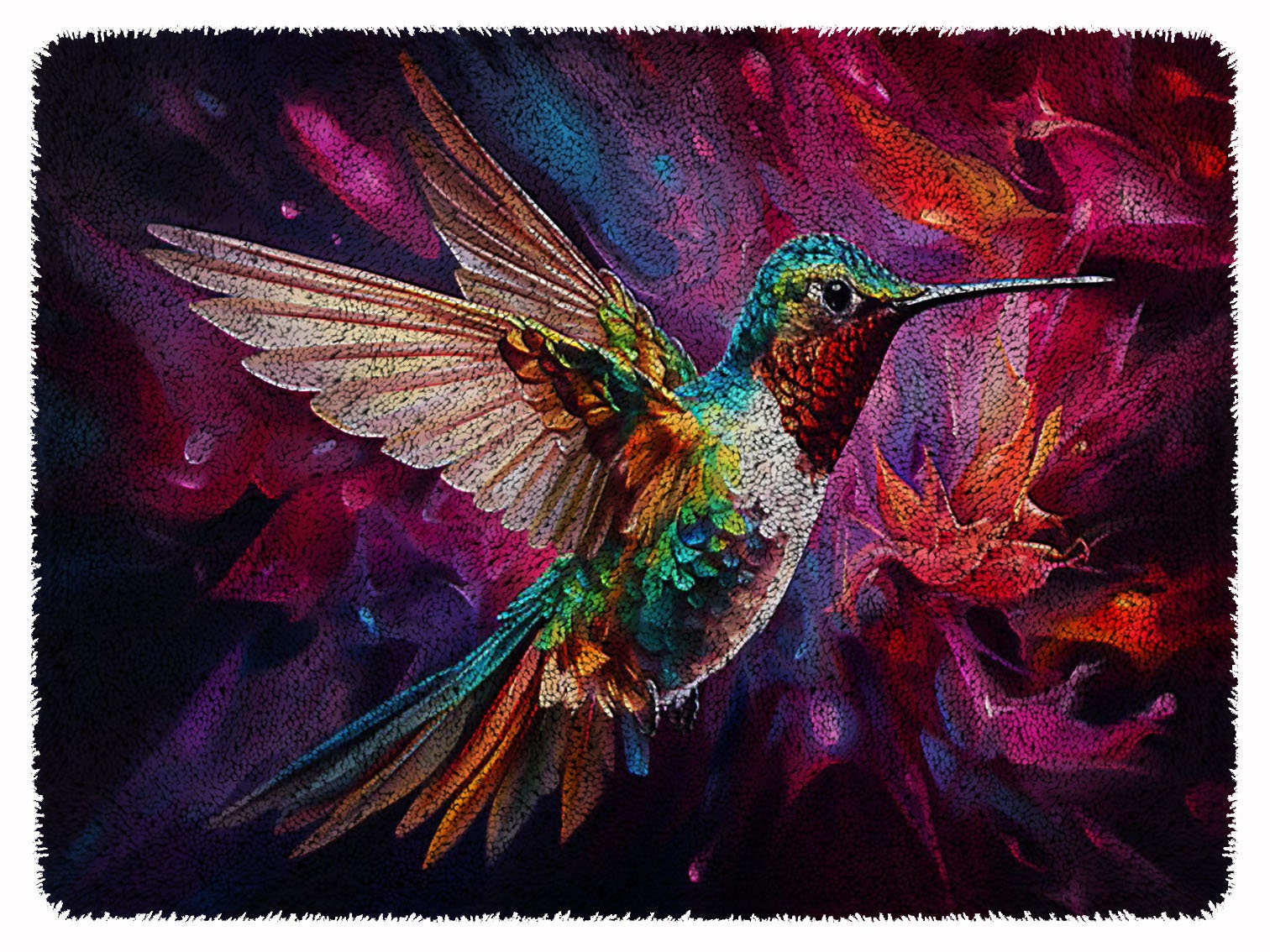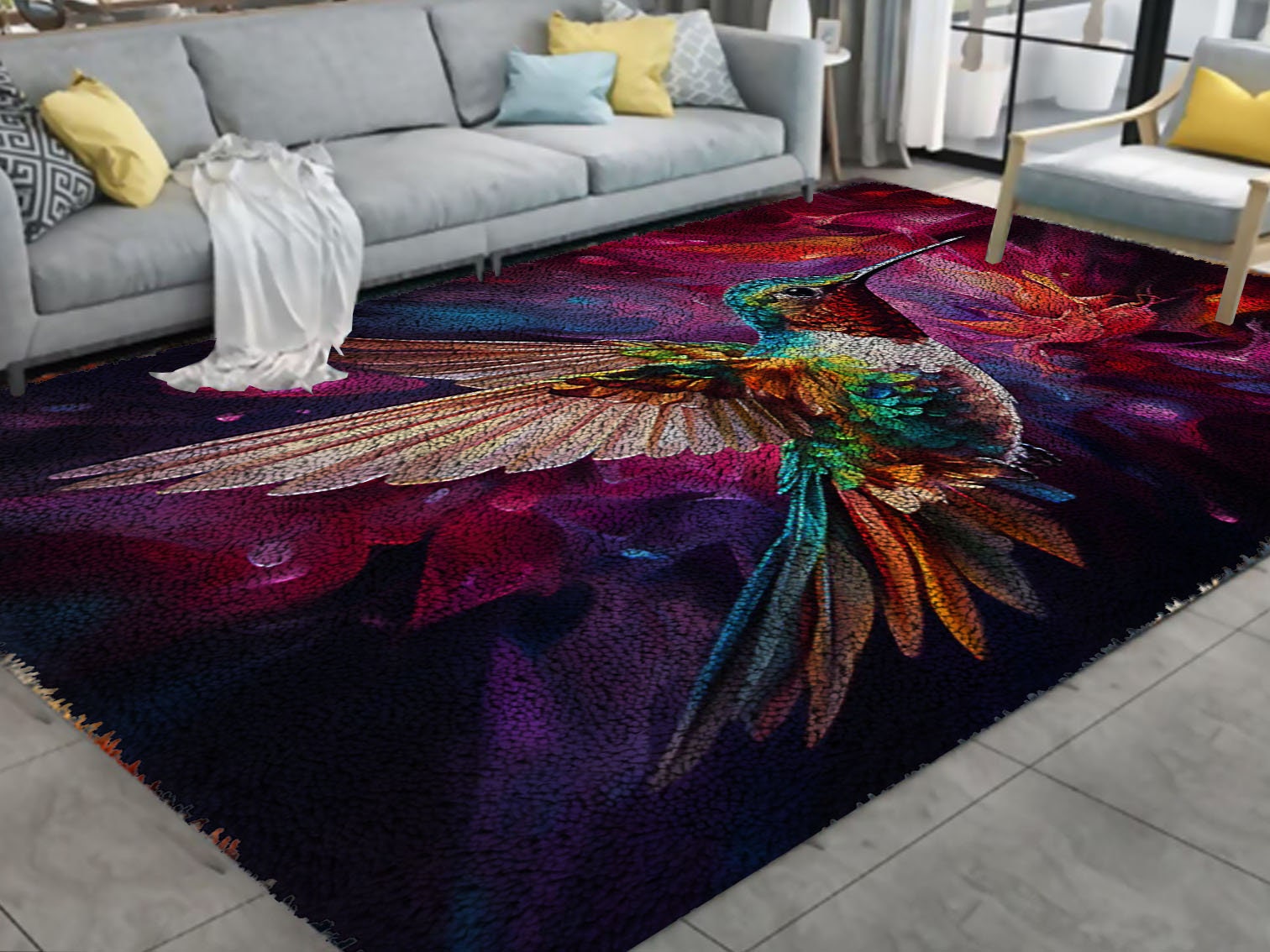 Oh, dieses Knüpfset ist genau das Richtige, wenn du mal wieder Lust auf was Kreatives hast! Das Kolibri-Blumen-Muster sieht einfach traumhaft aus und du kannst dir deinen eigenen Teppich, Kissenbezug oder Wandbehang machen.