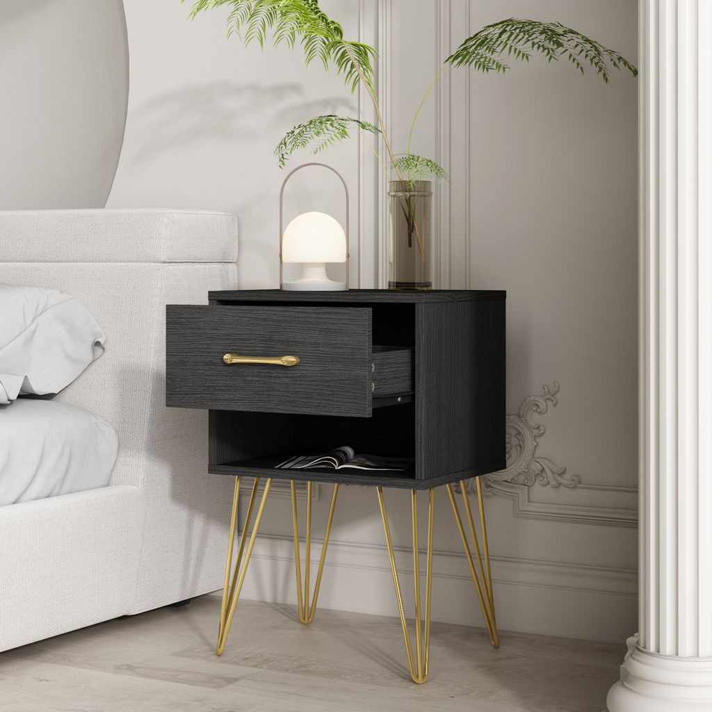 Wow, diese Nachttische machen was her! Das Set mit 2 Tischen in eleganter Samtoptik (Beige) und goldfarbenen Metallbeinen sieht einfach luxuriös aus. Jeder Tisch hat eine geräumige Schublade und ein offenes Regal - perfekt für Bücher, Fernbedienung, Handy und alles was man nachts griffbereit haben will. Das absolute Highlight: Die mehrfarbige LED-Beleuchtung unter der Schublade! Schafft eine super gemütliche Atmosphäre im Schlafzimmer und gibt genug Licht um nachts was zu finden ohne geblendet zu werden. Mit 40x31x50 cm sind sie kompakt aber trotzdem praktisch. Jeder Tisch trägt bis zu 80 kg - also absolut stabil! Die goldenen Beine sind nicht nur schick, sondern lassen auch Platz für den Saugrobotor unten durch. Perfekt als Nachttisch, aber auch als Beistelltisch im Wohnzimmer oder neben dem Sessel. Einfach aufbauen (Montage nötig) und schon hast du ein richtig stylisches Möbelstück das komplett dein Zimmer aufwertet!