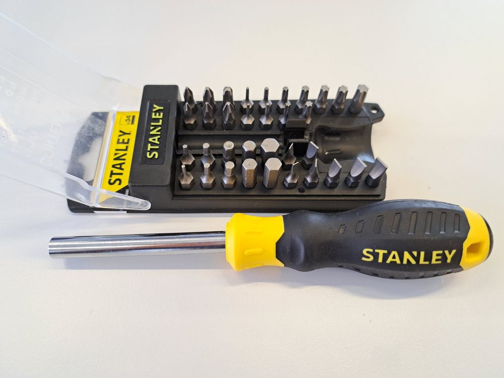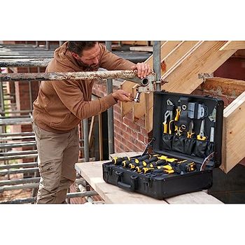 Boah, dieser STANLEY Werkzeugkoffer ist ja richtig professionell! Mit 119 Teilen hast du wirklich alles, was du für Reparaturen brauchst - von Spann- und Schraubwerkzeugen über Hammer, Schraubendreher bis zu Messer, Maßband und Wasserwaage. Die drei Ebenen sorgen für perfekte Ordnung und alles ist gut erreichbar. Der Aluminium-Koffer ist super stabil aber dennoch leicht und der klappbare Griff macht den Transport super einfach. Besonders cool: Die neue flache Ratsche mit 25% dünnerem Kopf kommt auch in enge Ecken rein. Ob in der Werkstatt, Bad, Küche oder Wohnzimmer - mit diesem Set bist du für alle Reparaturen gewappnet. Die Metallverschlüsse garantieren Langlebigkeit und die kompakten Maße von 128x430x300mm sind ideal für die Aufbewahrung. Einfach ein rundum gelungenes Set für Heimwerker und Profis!