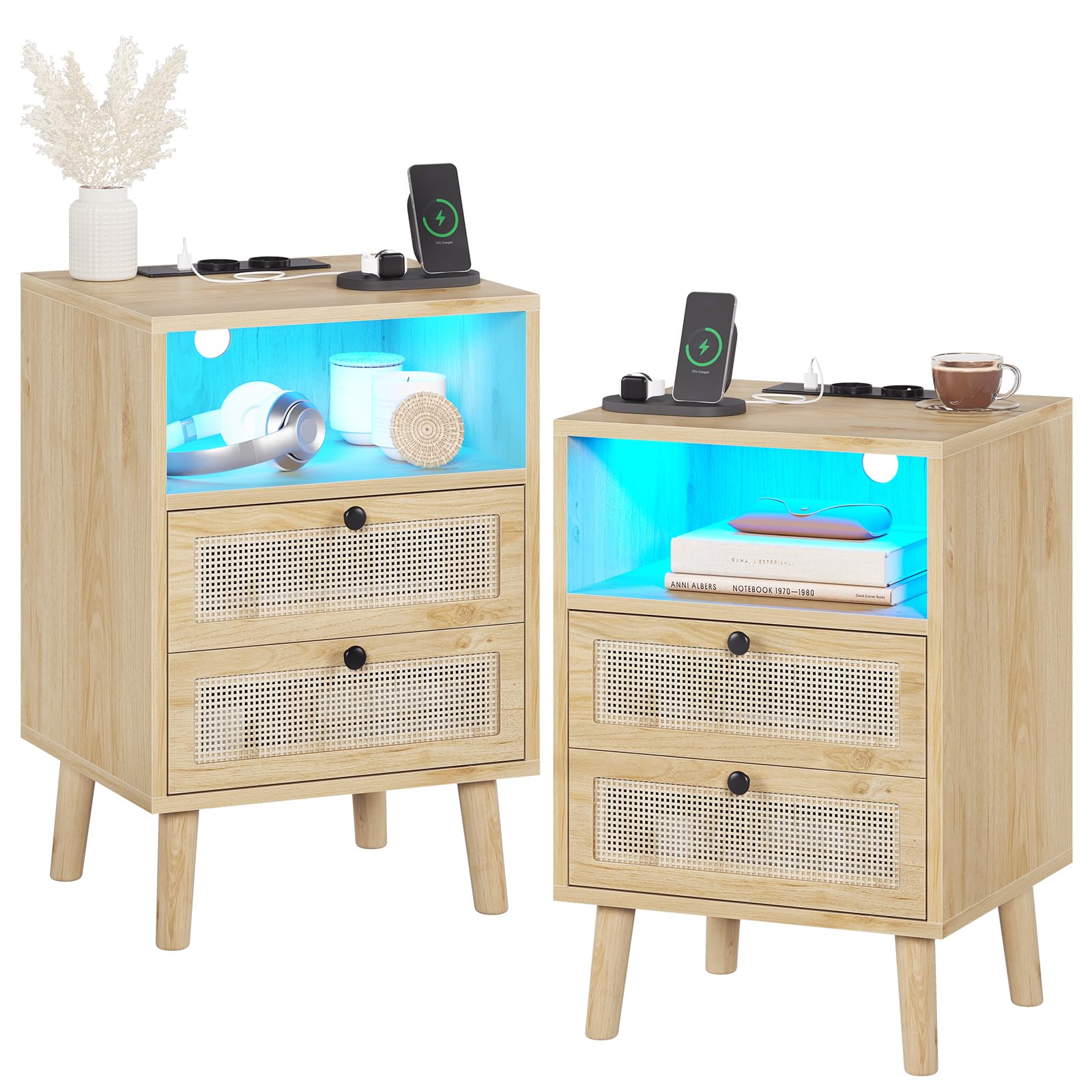 Diese Nachttische machen dein Schlafzimmer richtig smart! Das 2er-Set im Landhaus-Stil sieht nicht nur gut aus in Beige, sondern hat auch praktische Steckdosen und USB-Anschlüsse direkt integriert. Endlich keine langen Kabel mehr zum Bett - einfach Handy, Tablet & Co. nebenher aufladen. Mit 48cm Breite bieten die Tische genug Platz für alles, was du nachts griffbereit haben willst. Das offene Fach und der Schrank mit Flügeltür sorgen für Ordnung, ohne dass du auf Privatsphäre verzichtest. Besonders clever: Der Kabeldurchlass hinten versteckt alle Kabel ordentlich. Aus robustem Holz gefertigt und mit wasserfester Oberfläche - hält lange und ist leicht zu reinigen. Einfach aufbauen und von der praktischen Ladestation profitieren!