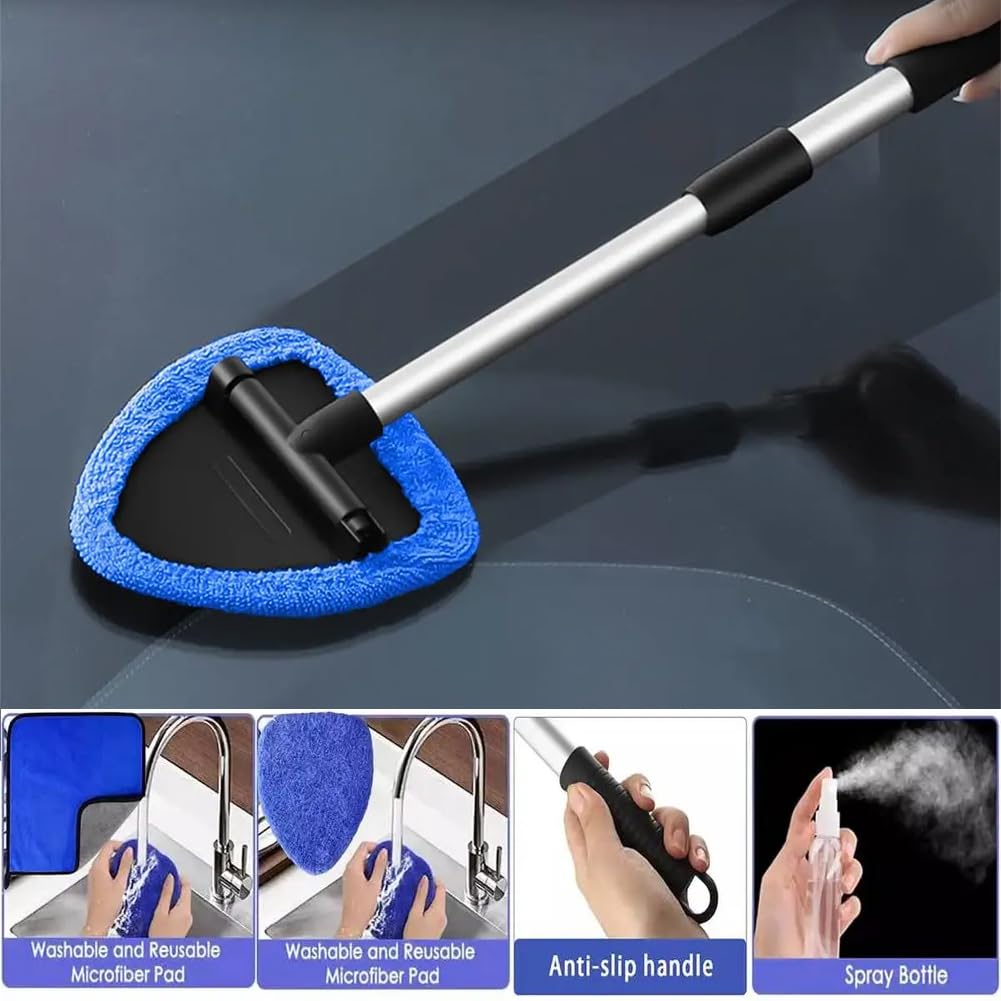 So sauber waren deine Autoscheiben noch nie! Dieses praktische Set mit verstellbarer Teleskopstange (17-23 Zoll) und 6 Mikrofaserpads macht Fensterputzen zum Kinderspiel. Der Dreieckskopf erreicht auch schwierige Ecken. Mit 180° verstellbarem Kopf für optimale Reinigung. Inklusive Sprühflasche und Entlüftungsbürste. Perfekt für Auto und Haus. Die Pads sind waschbar und wiederverwendbar. Leicht, kompakt und immer griffbereit. Endlich streifenfrei saubere Scheiben!