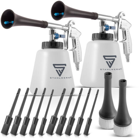 Mensch, mit diesen Druckluft-Pistolen macht Reinigen richtig Spaß! Im 2er-Set - eine für dich, eine für den Kollegen oder als Reserve. Der Tornado-Effekt bläst selbst hartnäckigen Schmutz weg - ob Staub, Späne oder Rückstände. Mit regelbarem Ventil kannst du Reinigungsmittel zusetzen für extra Sauberkeit. Die ergonomische Form liegt super in der Hand, ist leicht und du wirst nicht so schnell müde. Aus hochwertigen Teilen - hält auch im professionellen Einsatz lange. Inklusive Behälter und Trichter mit Bürste für noch bessere Reinigung. Perfekt für die Werkstatt, Autoaufbereitung oder zu Hause. Einfach an den Kompressor anschließen und loslegen - sauberer geht's kaum!
