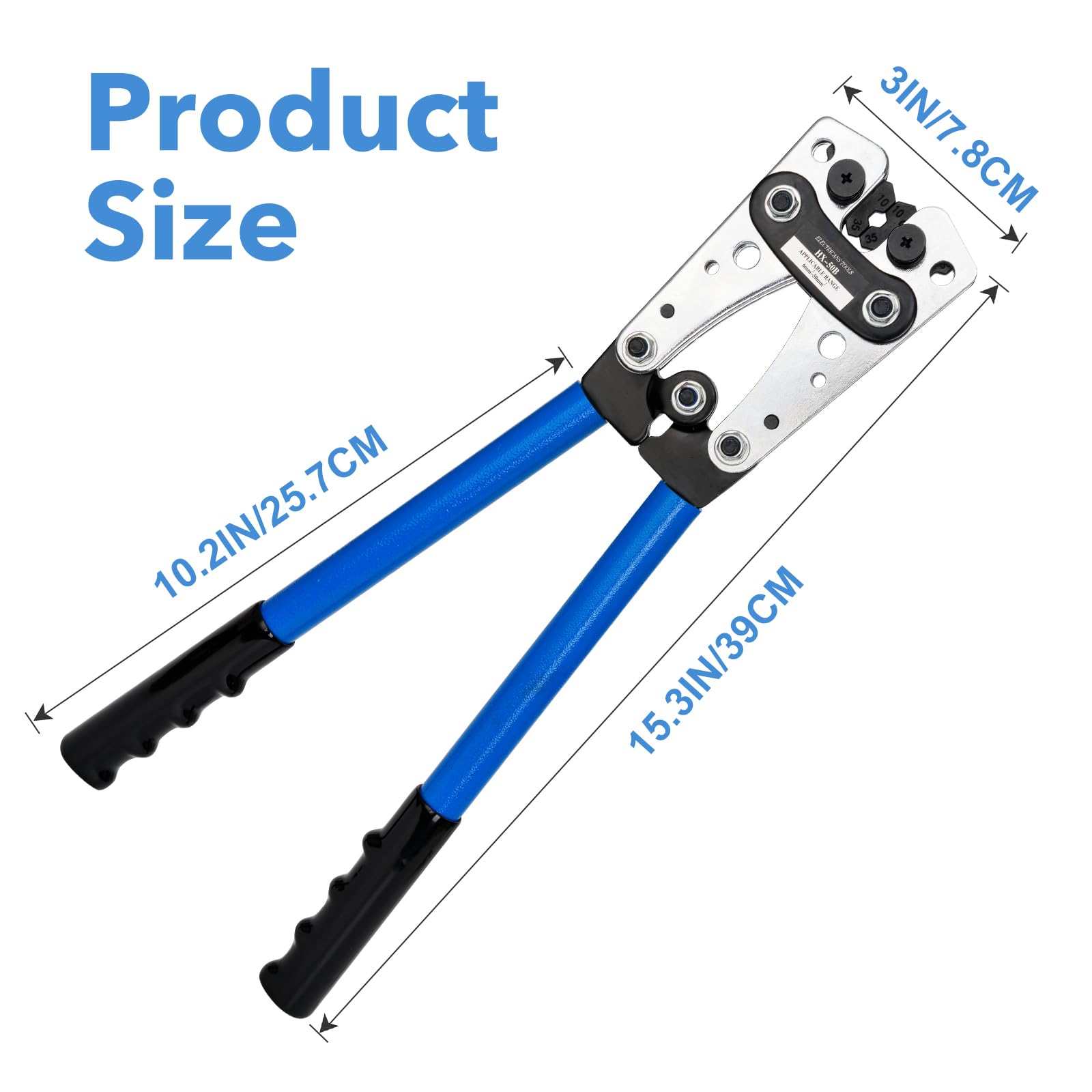 Für alle Heimwerker und Elektro-Profis! Diese Crimpzange von Comzantor ist ein echtes Arbeitstier für alle Kabelarbeiten. Mit 6 verschiedenen Crimpgrößen von 6-50mm² (entspricht AWG 10/8/6/4/2/0) bist du für fast jede Aufgabe gewappnet.