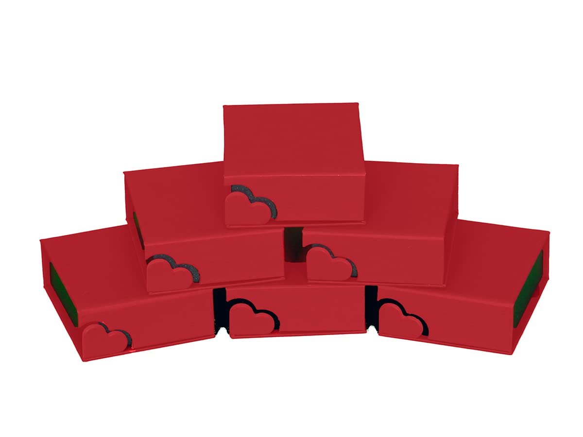 Präsentiere deinen Schmuck in style mit diesen eleganten ZIRKONIA Geschenkboxen! Das 6er-Set in den Farben Rot und Schwarz mit glamourösen Glitzer-Akzenten macht jedes Schmuckstück zum Highlight. Jede Box misst 8x7x3cm (HxBxT) und bietet perfekten Platz für Anhänger, Armbänder oder andere Schmuckstücke. Handgefertigt aus stabilem Karton mit magnetischem Verschluss für 100% sicheren Halt. Im Inneren sorgt ein schwarzer Samtschwamm dafür, dass der Schmuck sicher fixiert ist und edel zur Geltung kommt. Die weinrote Außenseite mit den glänzenden Details und der schwarzen Innenseite unterstreichen den Charme deines Schmucks perfekt. Ideal für Geburtstage, Hochzeiten, Valentinstag, Jahrestage oder als Autogeschenk - jede Box enthält sogar Silikagel, um Feuchtigkeit zu verhindern und den Schmuck in bestem Zustand zu halten. Verfügbar in verschiedenen Mengen (6, 12 oder 24 Stück) für jeden Anlass. Mach deine Schmuckgeschenke unvergesslich mit dieser professionellen Präsentation!