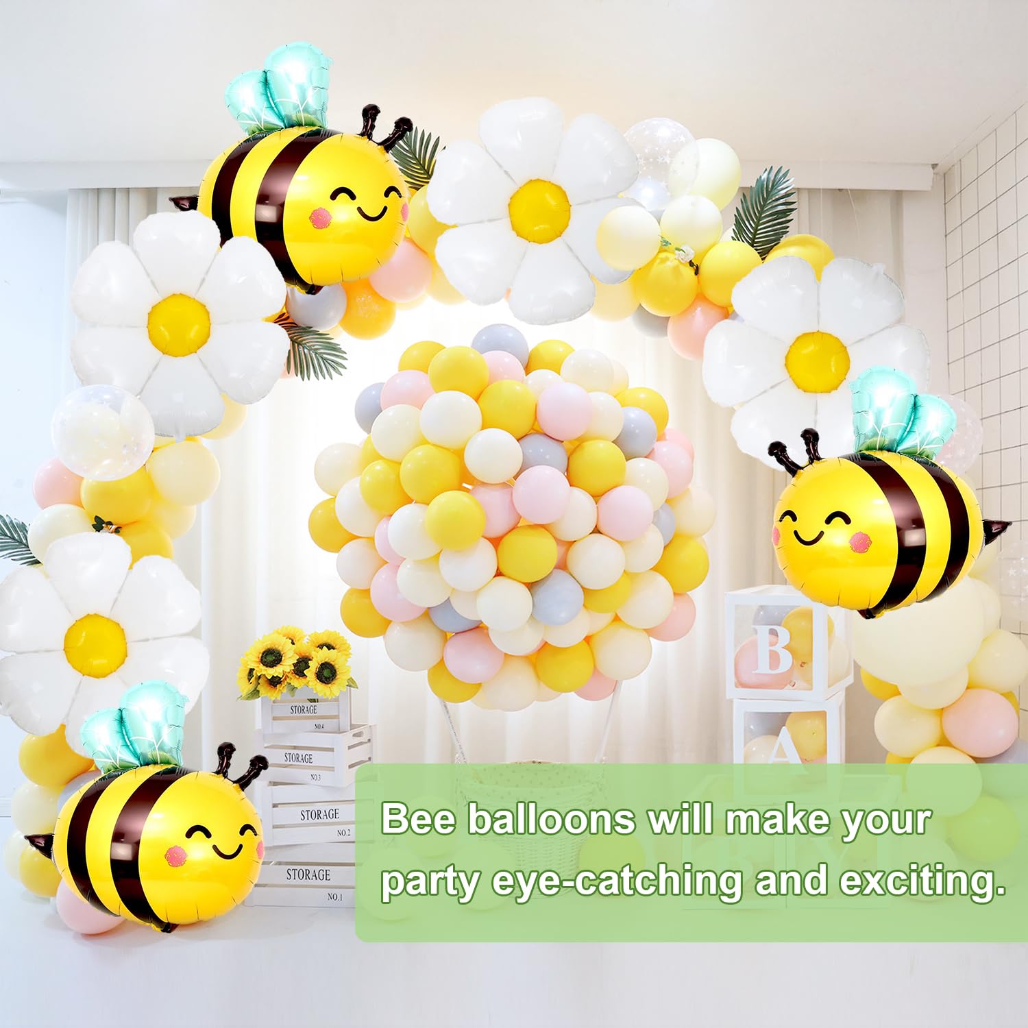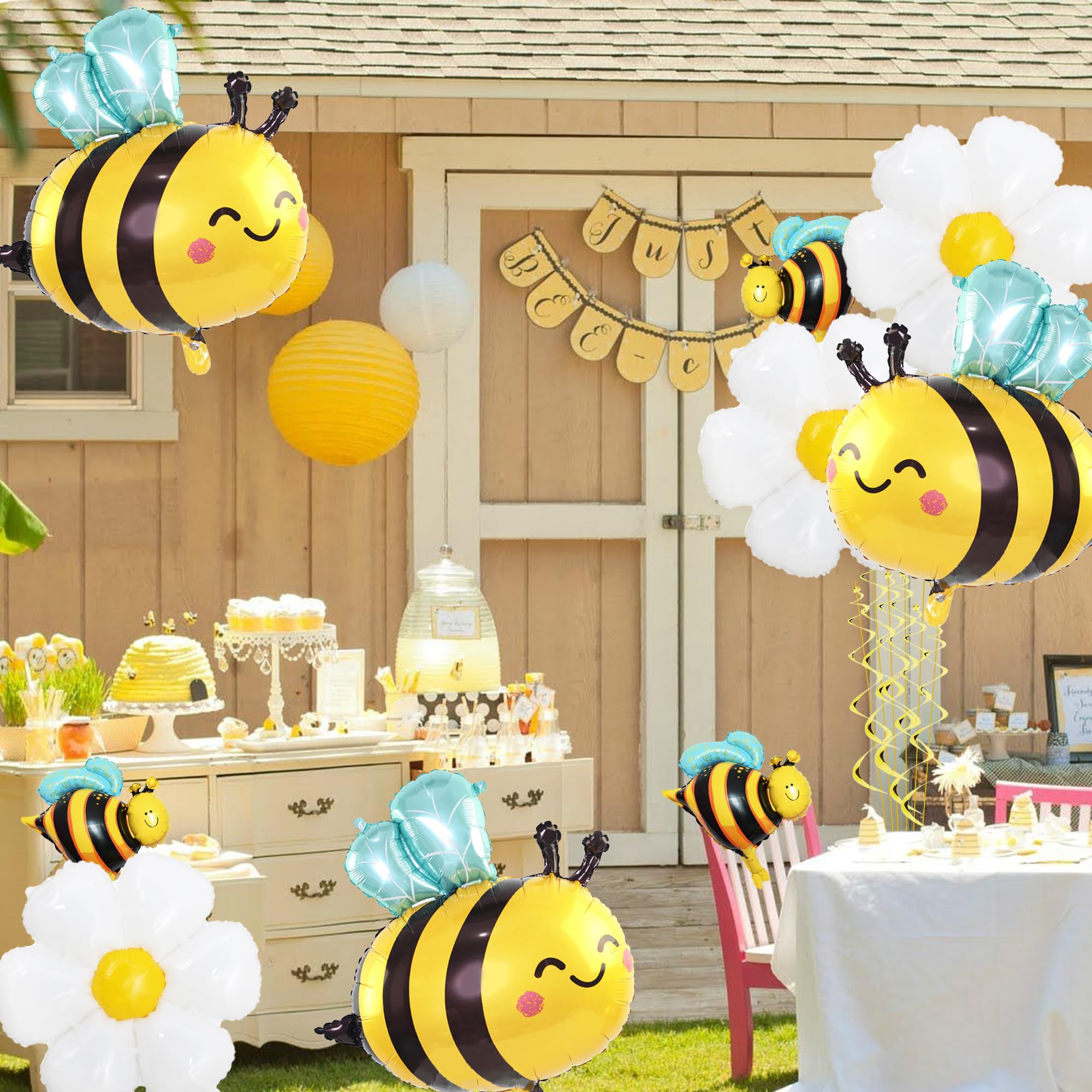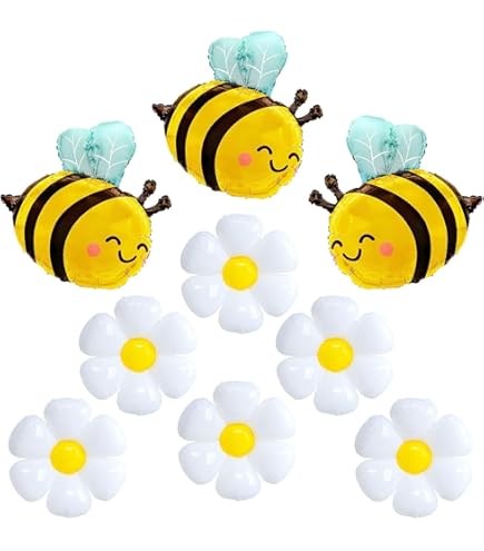 Oh wie süß! Dieses 6-teilige Bienen-Deko-Set bringt sofort Frühlingsstimmung auf deine Party! Enthalten sind 3 niedliche Bienen-Ballons und 3 weiße Gänseblümchen-Ballons plus Strohhalm. Perfekt für Geburtstage, Baby-Shower, Hochzeiten oder einfach mal so! Die Alufolien-Ballons sind super einfach aufzublasen - entweder mit Luft oder Helium. Einfach aufpusten, zudrücken und schon halten sie den ganzen Tag! Das Material ist hochwertig und reißfest, also keine Sorge vor platzenden Ballons. Die knalligen Farben (gelb-schwarz mit blauen Flügeln) sehen einfach umwerfend aus! Tolle Foto-Hintergründe garantiert. Übrigens: Die Ballons sind wiederverwendbar - einfach vorsichtig abbauen und fürs nächste Fest aufbewahren. Mach deine Feier unvergesslich mit dieser bezaubernden Deko! Egal ob drinnen oder draußen - diese fröhlichen Bienen bringen jeden zum Lächeln. Einfach aufhängen, dekorieren und staunen!