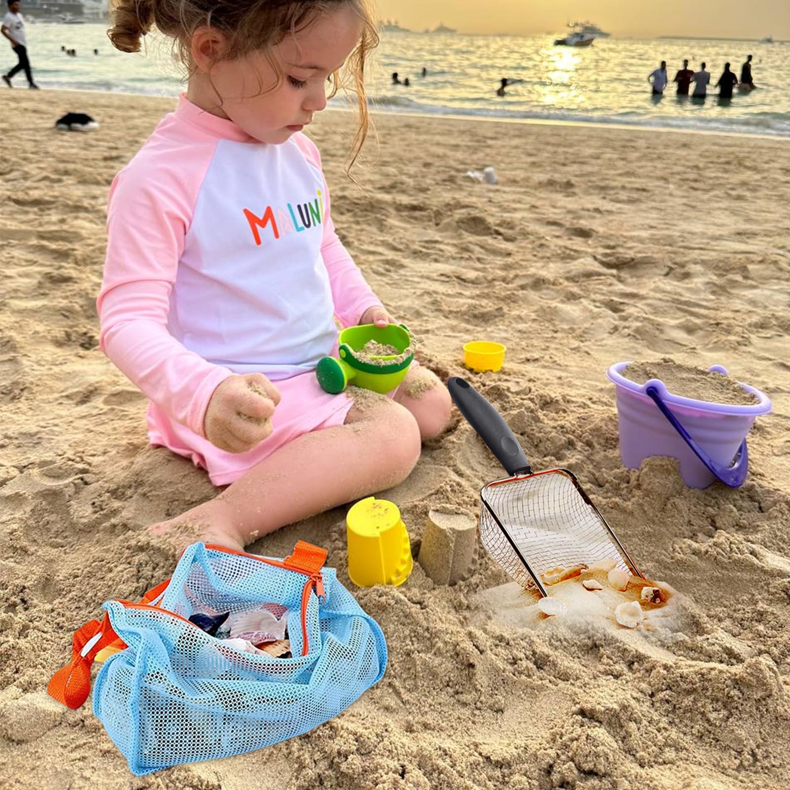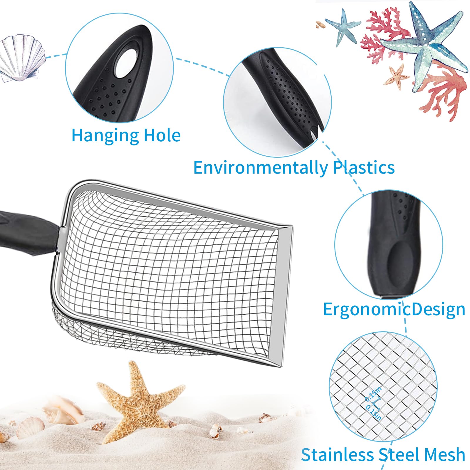 Endlich Sandspielzeug, das nicht nach der ersten Saison kaputt geht! Diese beiden robusten Sandschaufeln aus Edelstahl-Netzgewebe sind die perfekten Begleiter für jeden Strandausflug. Mit einer Größe von 26,9 x 10 cm und einer Grifflänge von 11,9 cm liegen sie perfekt in kleinen Händen. Das Netzdesign ermöglicht ein effizientes Sieben von Sand - ideal für die Suche nach Muscheln, Steinen oder anderen Strandschätzen! Die ergonomisch geformten, rutschfesten Kunststoffgriffe sorgen für bequemen Halt, selbst wenn sie nass sind, und reduzieren die Ermüdung der Hände beim Buddeln. Besonders praktisch: Das Aufhängeloch am Griff ermöglicht eine platzsparende Aufbewahrung. Hergestellt aus hochwertigem Edelstahl und robustem Kunststoff, sind diese Schaufeln langlebig, rostfrei und überstehen so manchen Sandburgen-Einsatz. Ob am Strand, im Sandkasten oder beim Spielen im Garten - mit diesen Schaufeln wird jedes Outdoor-Abenteuer zum Erfolg! Perfekt für Jungen und Mädchen, die das Buddeln und Entdecken lieben.
