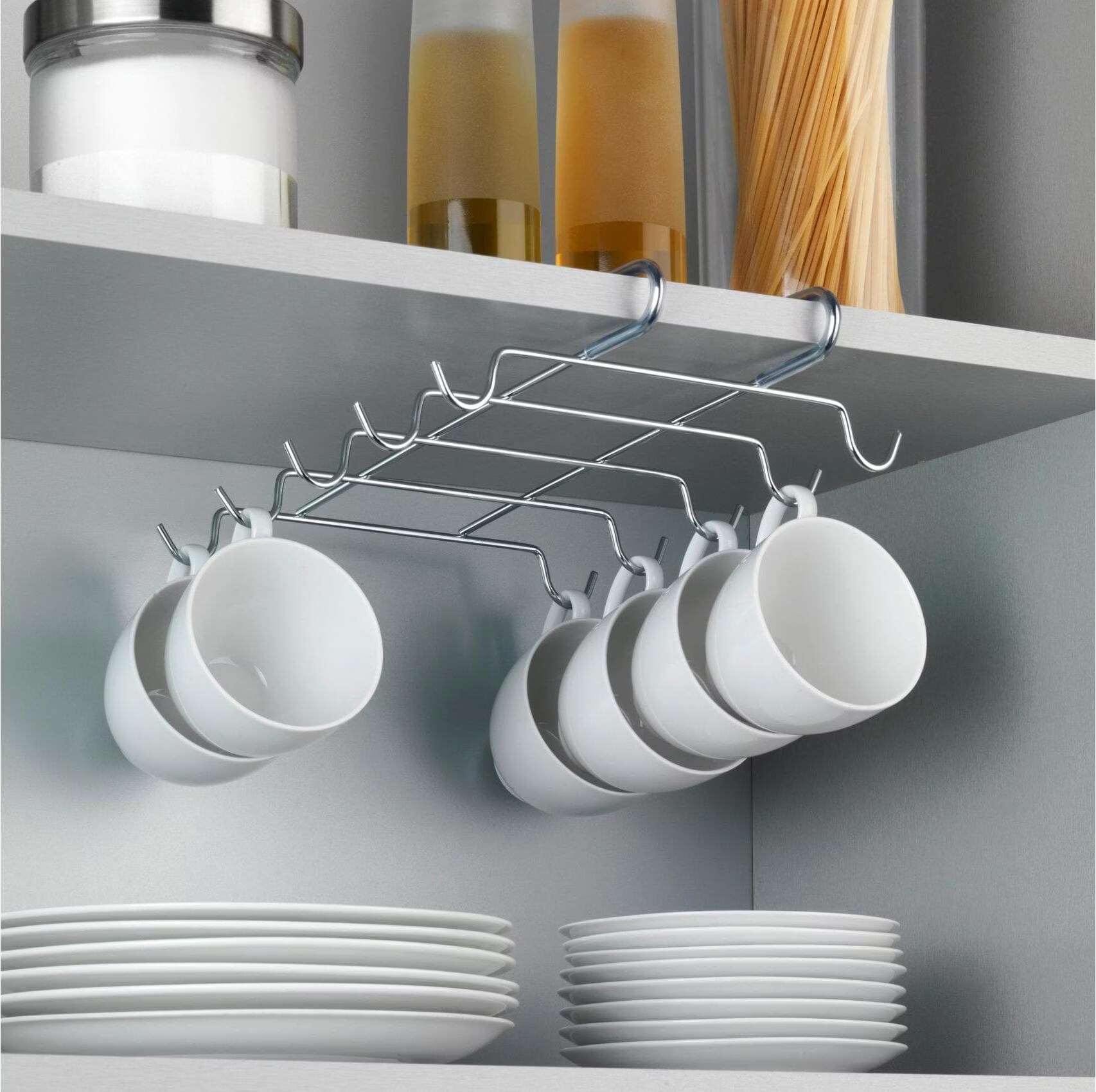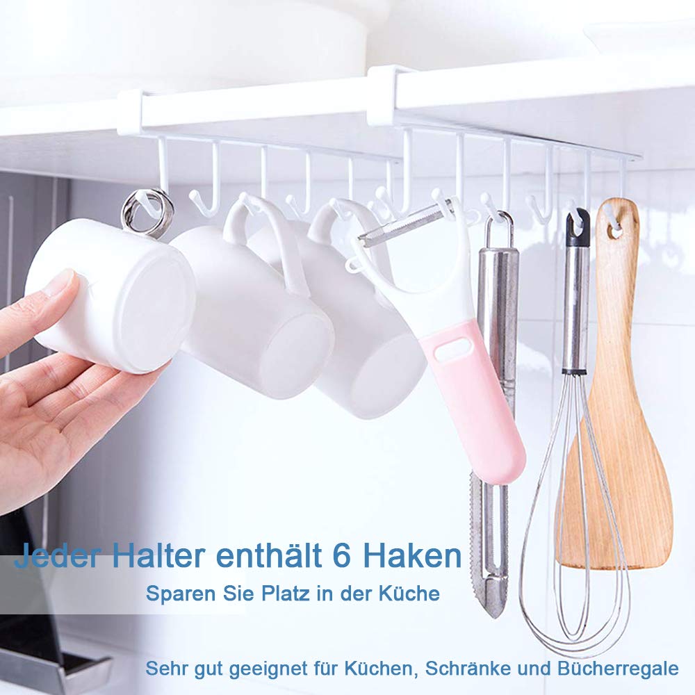 Endlich Ordnung in Küche und Schrank! Diese sinzau Tassenhalter im 2er-Set sind super praktisch. Jeder Halter hat 6 Haken - also insgesamt 12 Aufhängeplätze! Aus robustem Eisen mit weißer Beschichtung, damit nix rostet. Das U-förmige Design ist tief genug für Tassen, Becher und sogar Weingläser. Maximales Gewicht pro Halter: 3,5kg - also echt stabil! Einfach mit Schrauben befestigen (Löcher sind schon drin) und schon habt ihr mehr Stauraum. Perfekt nicht nur für Tassen, sondern auch für Scheren, Dosenöffner, Schlüssel, Krawatten... ihr wisst schon, all das Zeug, das sonst rumliegt. Maße: 32x21x2cm. Einfach montieren und sich über den gewonnenen Platz freuen!