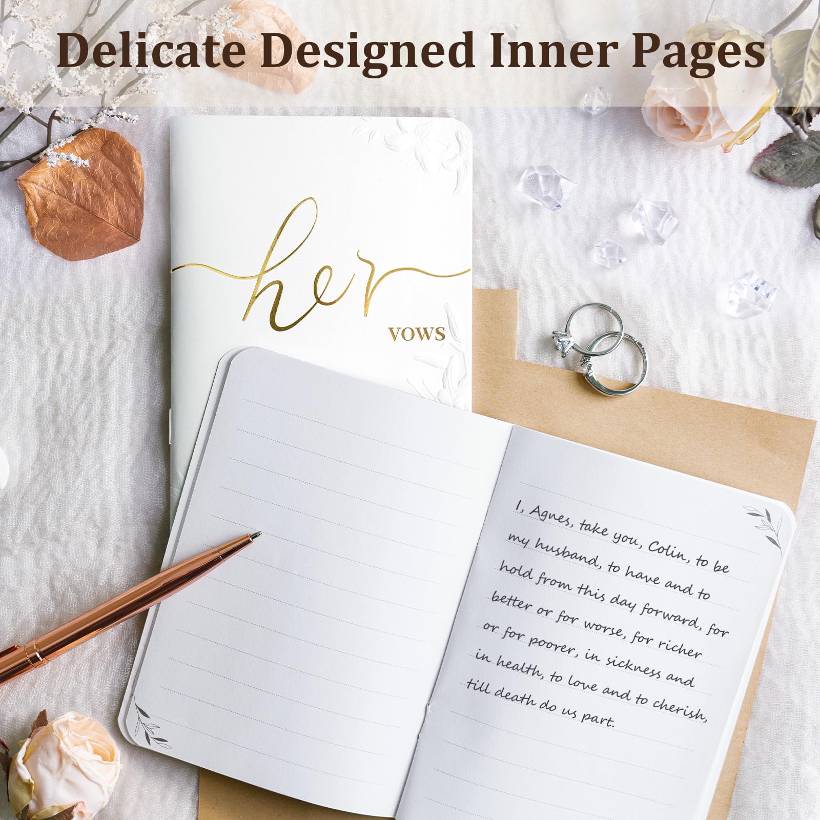 Mach eure Trauung unvergesslich mit diesen wunderschönen Gelübdebüchern! Das Set enthält zwei Bücher (5,5x4 Zoll) in Schwarz und Weiß mit eleganter Goldprägung. Mit 28 Seiten bieten sie genug Platz für eure persönlichen Worte. Die Innenseiten sind mit dekorativen Lilien- und Eukalyptus-Mustern verziert. Inklusive zwei Stiften für Braut und Bräutigam. Perfekt um nervöse Hände zu beruhigen und die wichtigsten Worte festzuhalten. Wird zu einem wertvollen Erinnerungsstück an euren großen Tag. Ein besonderes Geschenk für frisch Verlobte oder zur eigenen Hochzeitsvorbereitung. Schafft eine unvergessliche Zeremonie!