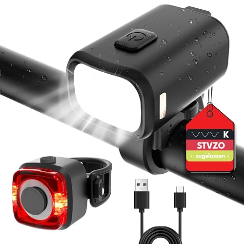 • MIVELO Fahrradlicht Set StVZO - USB-aufladbar & Wasserdicht Mit 70 Lux Für Sicheres Fahren