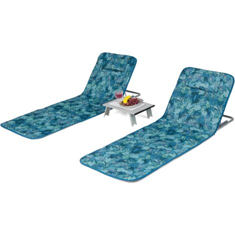 Entspannung pur am Strand oder im Garten! Dieses FANTASK 2er-Set mit verstellbaren Strandmatten und Beistelltisch macht jeden Tag zum Urlaubstag. Die Matten bieten 5 verstellbare Rückenpositionen - perfekt zum Sitzen, Lesen, Sonnenbaden oder für ein Nickerchen. Mit den Maßen 161x55,5x27-47cm ist für jede Position der richtige Komfort garantiert. Der praktische Beistelltisch (40x29,5x12,5cm) bietet Platz für Getränke, Snacks oder das Handy und trägt bis zu 10kg. Aus atmungsaktivem, wasserdichtem Oxford-Stoff und robustem Aluminiumrahmen sind die Matten nicht nur bequem, sondern auch langlebig. Einfach zusammenzuklappen und mit den Schultergurten bequem zu transportieren - ideal für Strand, Camping, Park oder Terrasse. Mit ergonomischer Kopfstütze und praktischem Staufach für Sonnenbrillen und Kleinkram. Alles inklusive Tragetasche - einfach einpacken und los geht's zum entspannten Outdoor-Vergnügen!