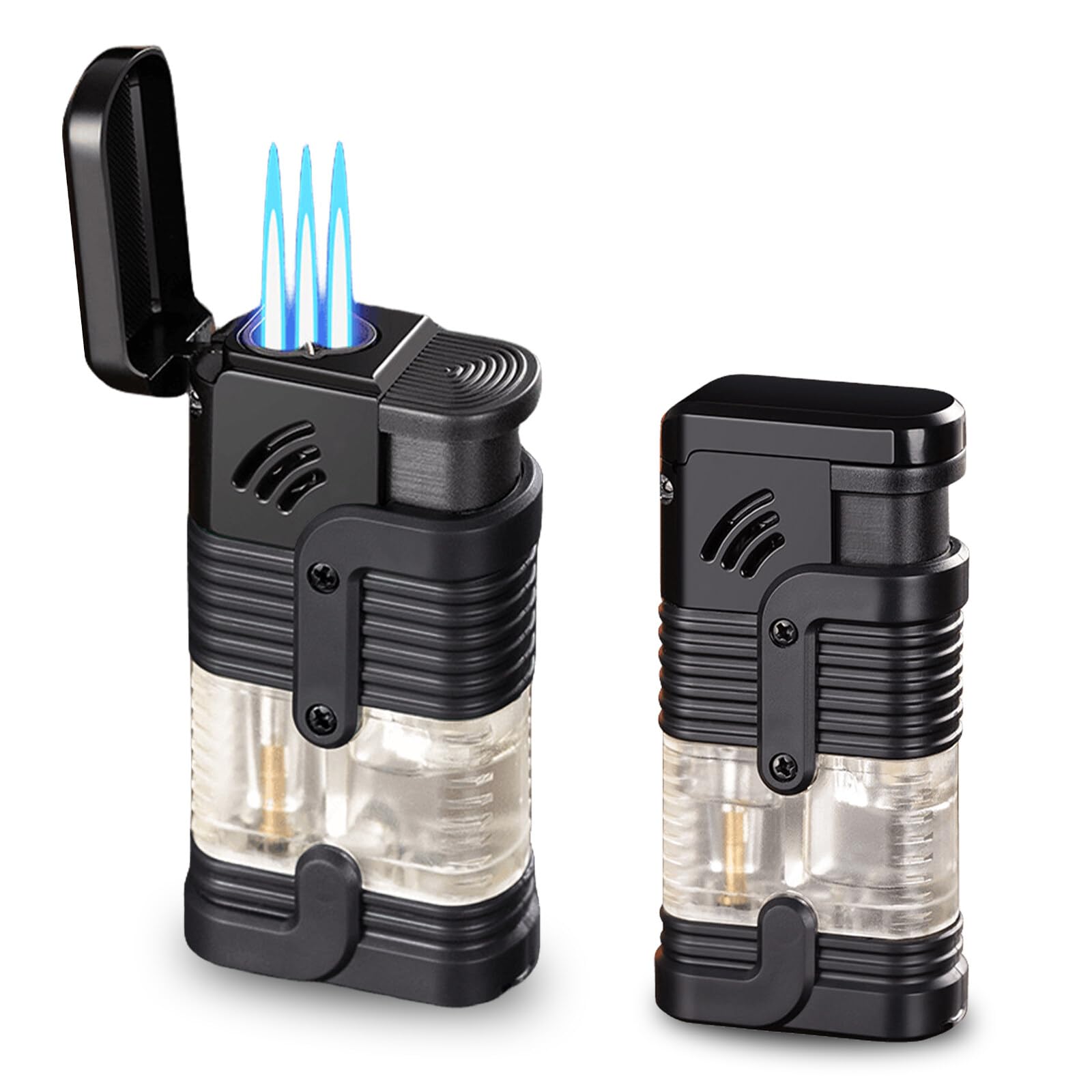 • 3er Set Sturmfeuerzeug Jetflamme - Nachfüllbare Gasfeuerzeuge Mit Sichtbarem Tank