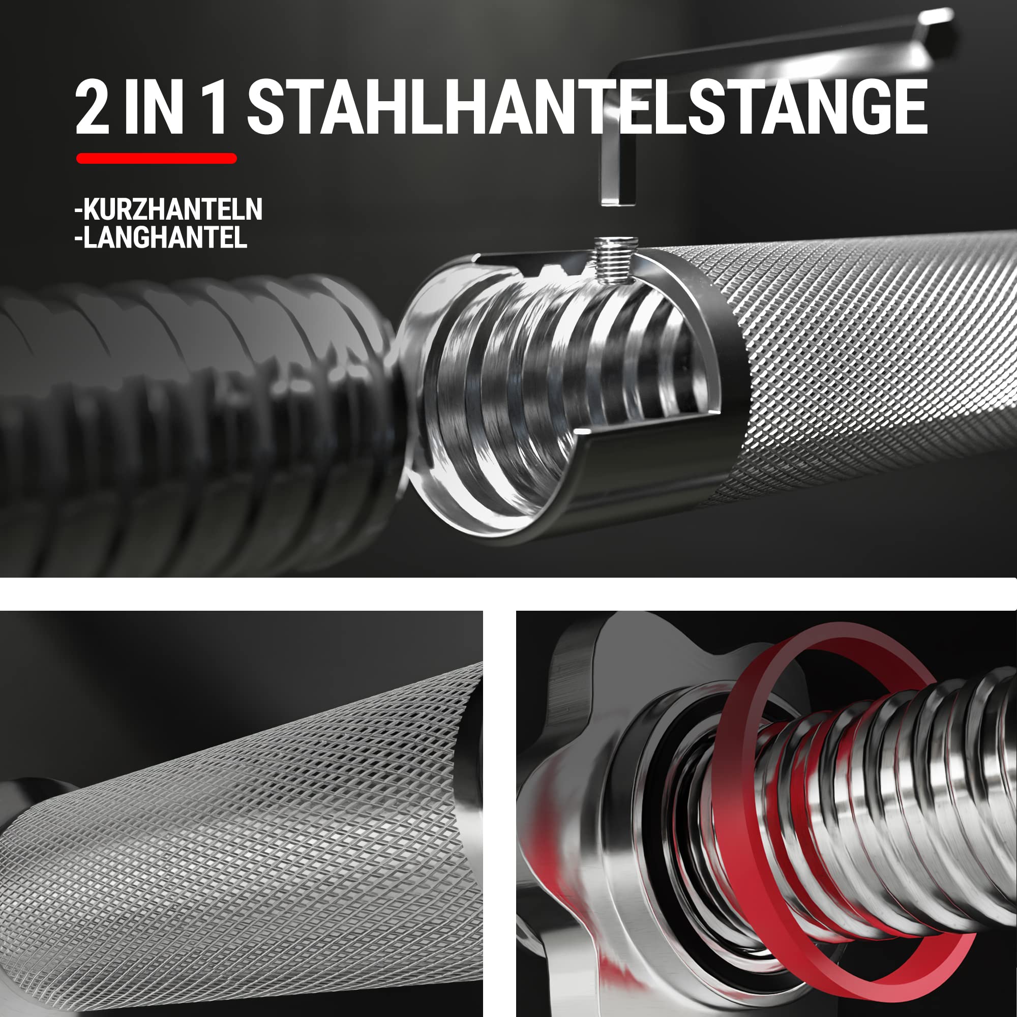Möchtest du dein Homegym aufrüsten? Diese astound Hantelstangen sind genau das Richtige! Das Set enthält zwei robuste Hantelgriffe mit 2,5cm Durchmesser - perfekt für dein Krafttraining. Die Stangen sind innen aus massivem Stahl und außen mit ABS ummantelt, das hält echt was aus! Bis zu 50kg pro Stange sind kein Problem. Mit den beiliegenden Sicherheitsbundringen rutscht dir nichts weg beim Training. Besonders praktisch: Du brauchst kein extra Werkzeug zum Wechseln der Gewichtsscheiben. Die ergonomischen Gummigriffe liegen super in der Hand und die rotierenden Enden machen jede Übung flüssiger. Ob für Bizeps-Curls, Schulterdrücken oder Kreuzheben - mit diesen verstellbaren Hantelstangen bist du flexibel in deinem Training. Die 40cm und 50cm Varianten passen zu den meisten gängigen Gusseisen-Hantelscheiben. Einfach die Gewichte drauf, Ringe festdrehen und los geht's!