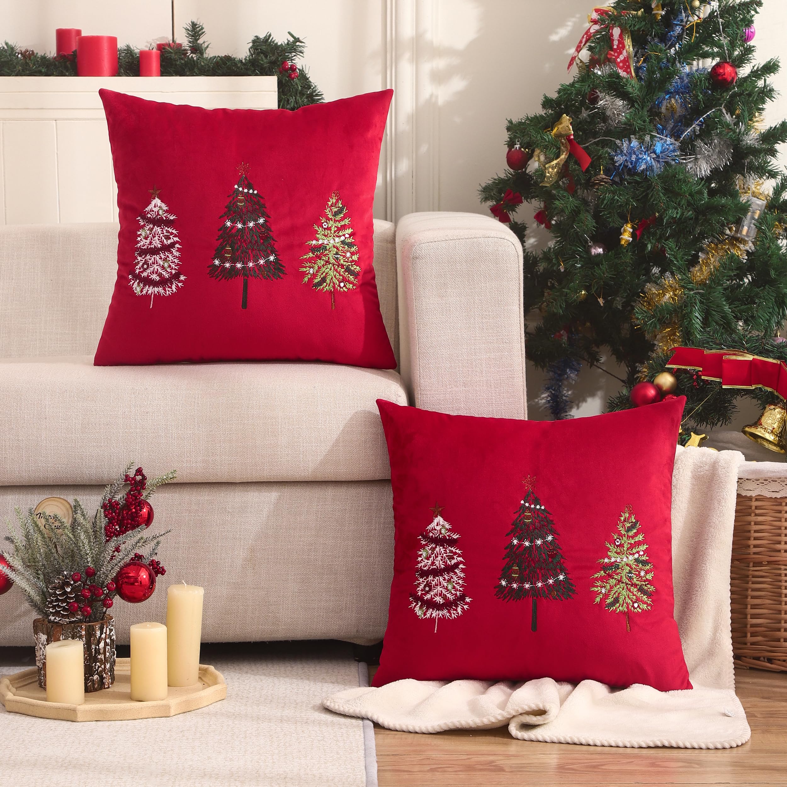 Mach dein Zuhause weihnachtlich gemütlich mit diesen tollen Samt-Kissenbezügen von Tosleo! Im 2er-Set mit je 45x45 cm Größe. Vorne schöne Stickereien mit Schneeflocken, Weihnachtsbäumen und Schneemännern, hinten einfarbig. Aus weicher, atmungsaktiver Polyesterfaser - super kuschelig und haustierfreundlich. Mit unsichtbarem Reißverschluss, leicht zu befüllen. Perfekt für Sofa, Couch, Bett oder Wohnzimmer. Einfach in der Maschine waschbar, Farben bleiben erhalten. Bring Weihnachtsstimmung in deine vier Wände - ohne Innenkissen, also nur die Bezüge!