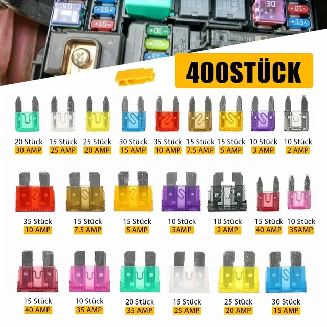 Immer die passende Sicherung parat! Dieses umfangreiche 400-teilige Sicherungs-Set enthält 200 Mini- und 200 Standard-Flachsicherungen von 2A bis 40A - intelligent nach Häufigkeit sortiert. Inklusive praktischem Sicherungszieher für einfaches Wechseln. Klare Farbcodierung und Beschriftung machen die Auswahl kinderleicht. Perfekt für PKW, Motorrad und Wohnmobile. Schützt zuverlässig vor Überlastung und Kurzschluss. Auch für Laien einfach zu handhaben - nie wieder wegen einer durchgebrannten Sicherung liegen bleiben!