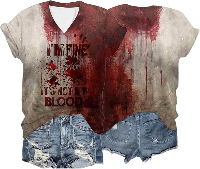 Bist du bereit für die gruseligste Nacht des Jahres? Dieses Halloween-T-Shirt mit blutigen Handabdruck-Motiv macht dich zur Queen der Halloween-Party! Der figurbetonte Schnitt mit V-Ausschnitt betont deine Silhouette perfekt. Aus atmungsaktivem Material gefertigt, bleibt es auch bei ausgelassener Tanzerei angenehm zu tragen. Das gruselige Design sorgt garantiert für Aufsehen - ob alleine oder als Teil eines Kostüms. Perfekt für Halloween-Partys, Gruselfeste oder um einfach mal deine dunkle Seite zu zeigen. Mach deine Freunde neidisch mit diesem absolut coolen Halloween-Shirt!