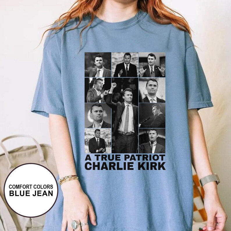 Zeig deine Ăberzeugung! Dieses Charlie Kirk T-Shirt mit patriotischem Design ist aus 100% weicher Baumwolle und super bequem zu tragen. đ