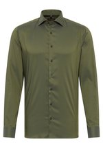 Maximaler Komfort meets Business-Look! Das ETERNA Performance Shirt kombiniert 46% Baumwolle, 46% Polyester und 8% Elasthan für perfekte Atmungsaktivität und Bewegungsfreiheit. Das 4-Wege-Stretch Material fühlt sich an wie Sportkleidung, sieht aber aus wie ein elegantes Business-Hemd. Bügelfrei und leicht - ideal für den aktiven Alltag. Mit klassischem Kent-Kragen, Kombimanschetten und rundem Saum für lässiges Tragen über der Hose. Slim Fit für eine moderne Silhouette. Perfekt für Office, Reisen oder entspannte Abende. Dein neues Lieblingshemd für jeden Tag!