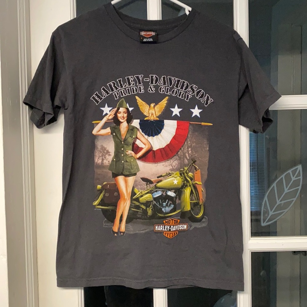 Für echte Harley-Fans und Military-Supporters! Dieses offizielle Harley-Davidson T-Shirt in Military Green ist einfach nur cool. Das exklusive Design zeigt US-Militärbasen im Fernost auf der Vorderseite - gibt's so bei keinem anderen Händler. Auf dem Rücken prangt der ikonische HD Bar and Shield mit Overseas Tour Aufdruck. Aus 100% weicher Baumwolle gefertigt, sitzt es sich klasse. Das klassische Fit macht's zum perfekten Allrounder. Ob für die nächste Motorrad-Tour oder einfach nur zum Relaxen - mit diesem Shirt zeigst du deinen Support für das Militär. Echt jetzt, was will man mehr?
