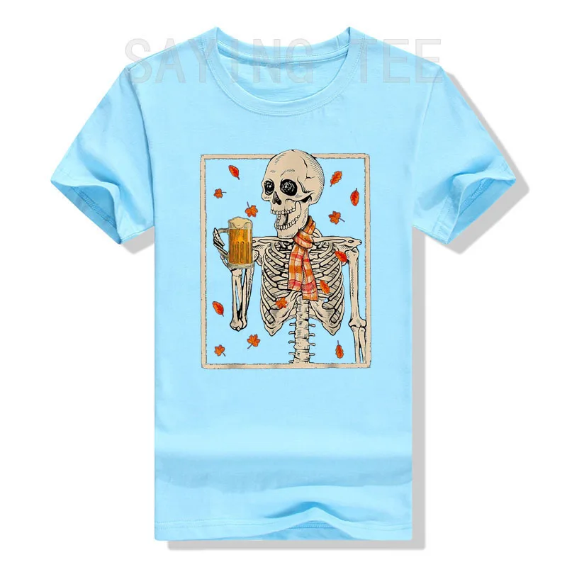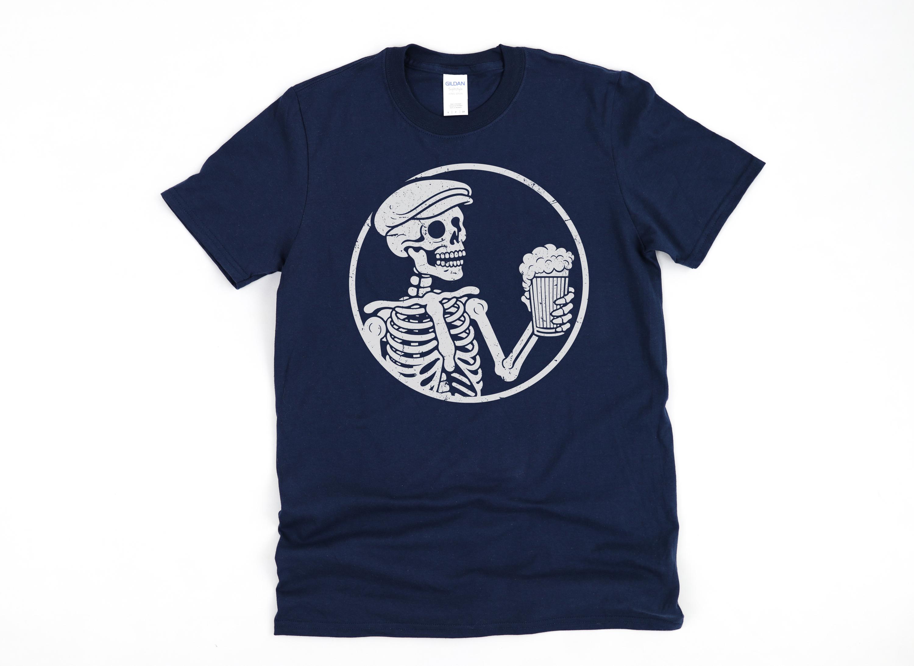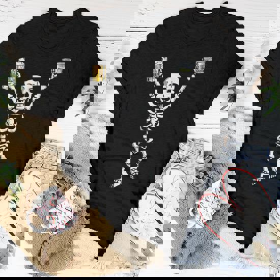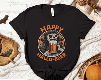 Bier und Skelette - was will man mehr zu Halloween? Dieses lustige T-Shirt zeigt ein Skelett mit Bierkrug in der Hand und sorgt garantiert für Lacher auf jeder Party. Perfekt für Oktoberfest, Kostümpartys oder einfach als Statement-Shirt.\\n\\nEgal ob Mann oder Frau, Papa oder Mama - wer schwarzen Humor und gute Laune mag, wird dieses Shirt lieben. Der klassische Schnitt sitzt bequem, und der doppelt genähte Saum garantiert Langlebigkeit.\\n\\nSuper für Halloween-Bar-Hopping, Kostümwettbewerbe oder einfach als Gesprächsstarter. Zeig, dass du Party und gruseligen Spaß verstehst! Einfach anziehen und die Komplimente einsammeln - das wird ein unvergesslicher Abend!