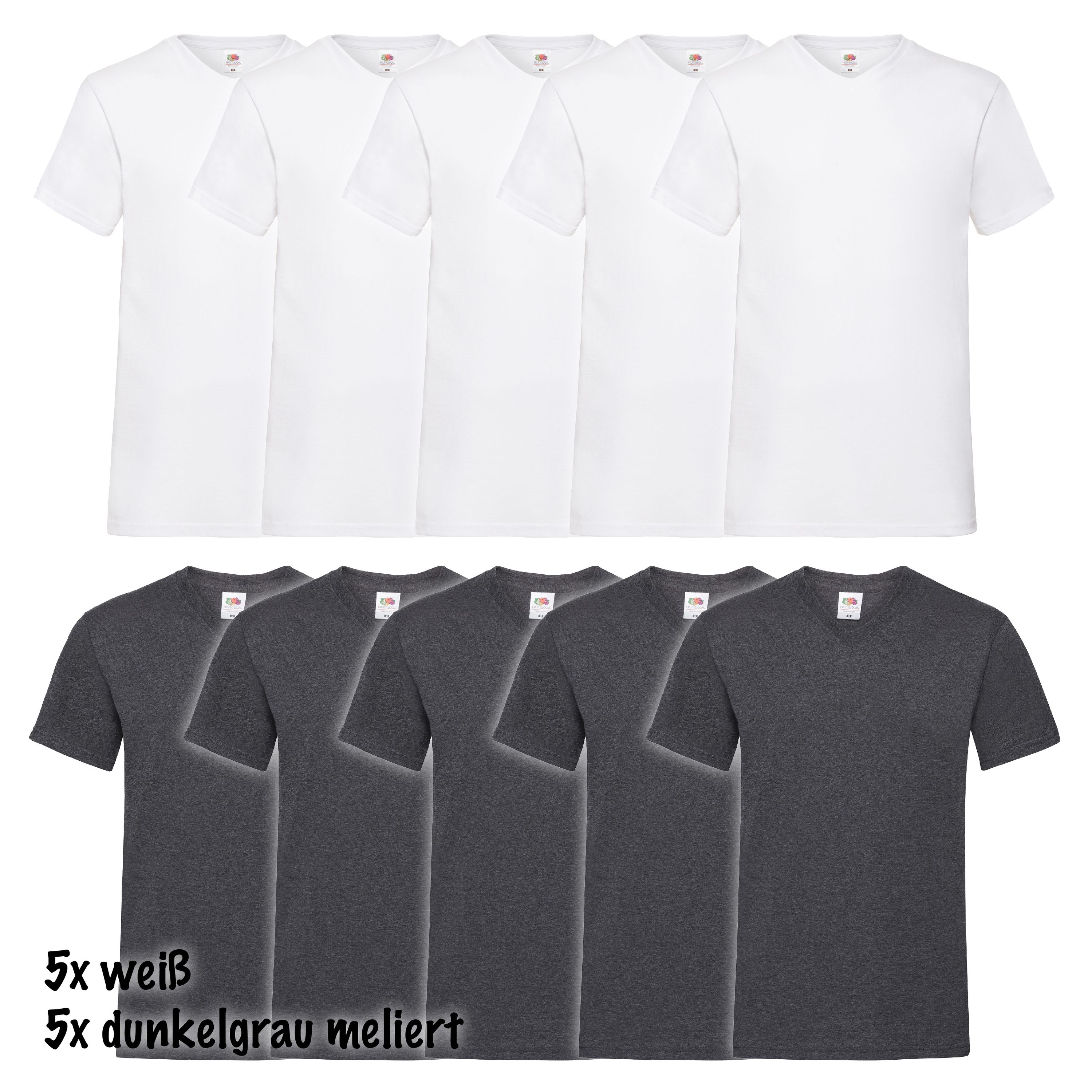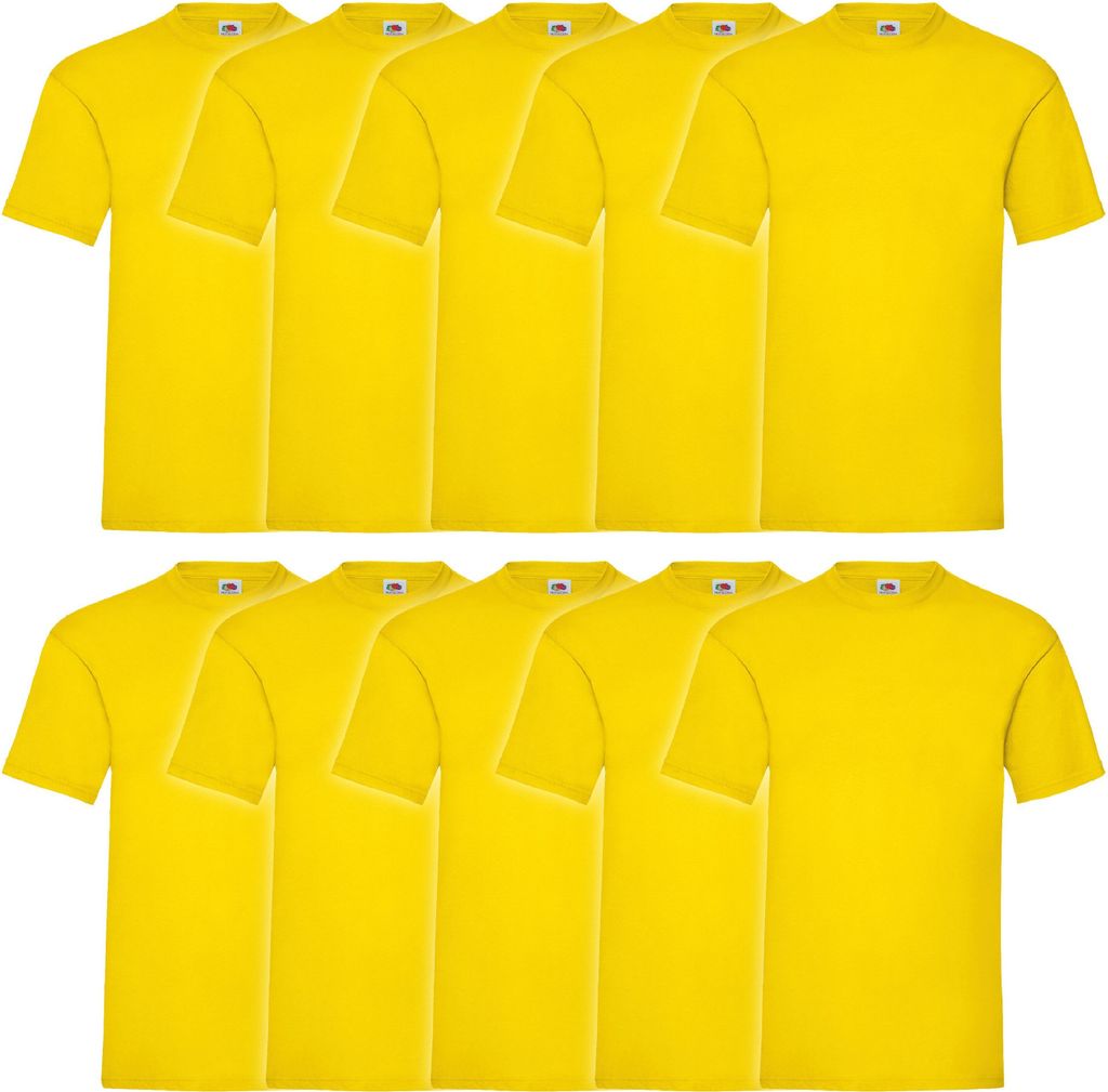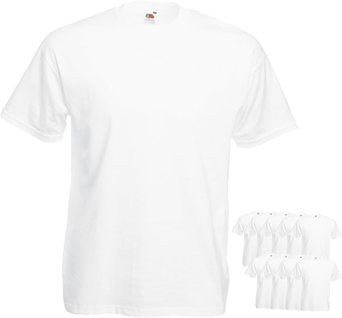 Das perfekte Basic-T-Shirt für jeden Tag! Dieses 10er-Pack von Fruit of the Loom bietet dir unschlagbaren Wert. Aus weicher Baumwolle/Lycra-Mischung mit dehnbarem Rundhals-Ausschnitt für optimalen Tragekomfort. Höhere Maschendichte für bessere Formstabilität und Langlebigkeit. Farbige Shirts wiegen 165g/m², weiße 160g/m² - nicht zu dick, nicht zu dünn. Einfach bei 40°C maschinenwaschbar und bügelfreundlich. Von Größe S bis 5XL erhältlich, in vielen Farben wählbar. Perfekt für Unterhemden, Arbeitskleidung, Sport oder einfach als Allrounder im Schrank. Mit 10 Shirts bist du lange versorgt - praktisch und preiswert!
