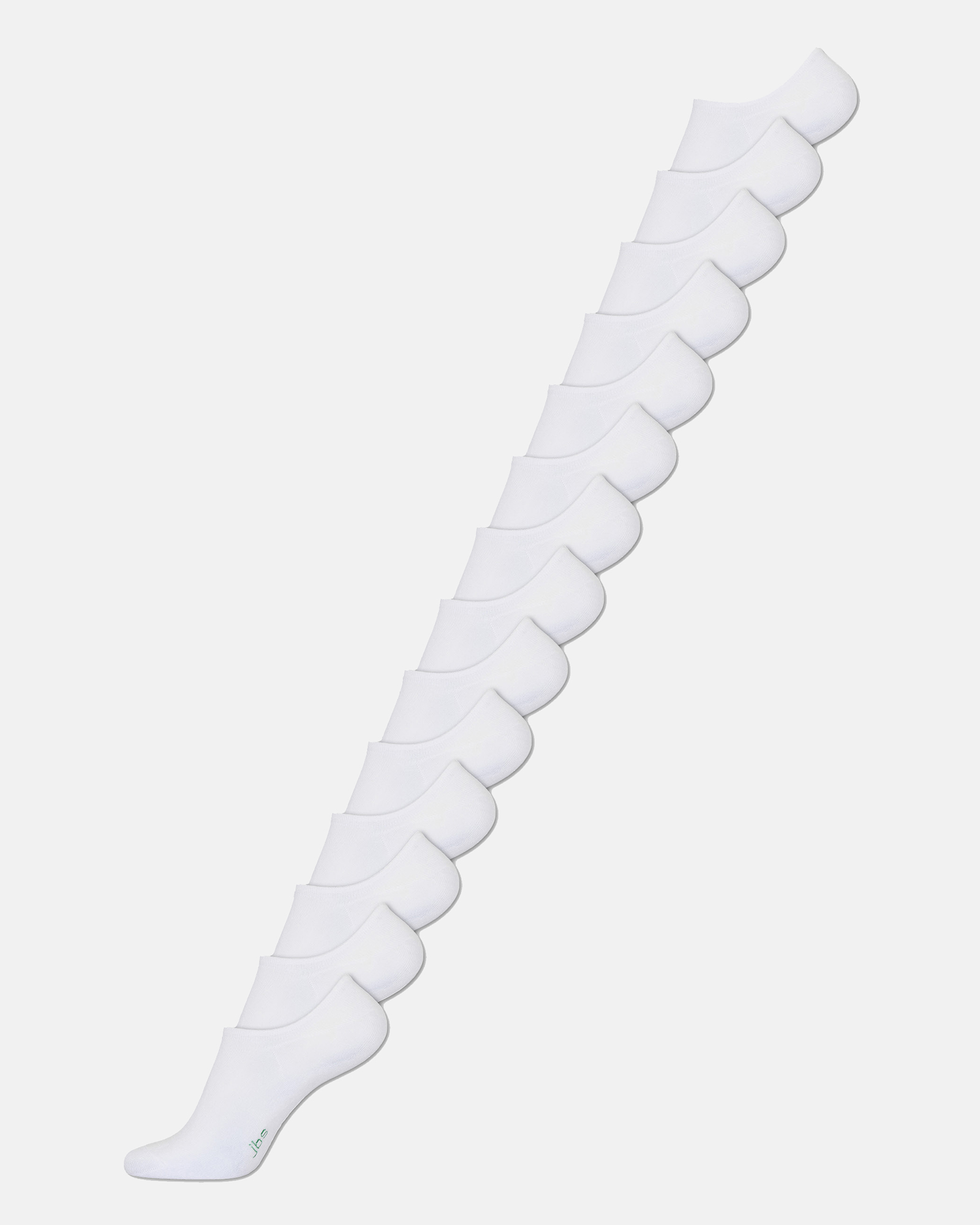 Kennst du das? Du ziehst deine liebsten Sneaker an - und die Socken rutschen ständig in die Schuhe? Mit diesen wernies No Show Socken gehört das Ärgernis der Vergangenheit an! Das 10er-Pack in verschiedenen Farbkombinationen gibt dir genug Wechselsocken für zwei Wochen. Die unsichtbaren Socken sitzen perfekt versteckt in deinen Sneakers, Sportschuhen oder Freizeitschuhen - nur die rutschfesten Silikonstreifen an der Ferse verraten, dass du überhaupt Socken trägst! Und die halten bombenfest: Drei Silikonpunkte und der spezielle Y-Fersenabsatz sorgen dafür, dass nichts mehr verrutscht. Aus gekämmter Baumwolle gefertigt, sind die Socken super atmungsaktiv und angenehm zu tragen - selbst beim Sport oder an warmen Tagen. Verstärkte Zehen- und Fersenbereiche machen sie extra langlebig, und die ergonomische Passform sitzt wie angegossen. Für Schuhgrößen US 6-13 geeignet - wenn du zwischen zwei Größen liegst, nimm einfach die größere. Einfach anziehen, Schuhe über und sich über unsichtbaren Komfort den ganzen Tag freuen!