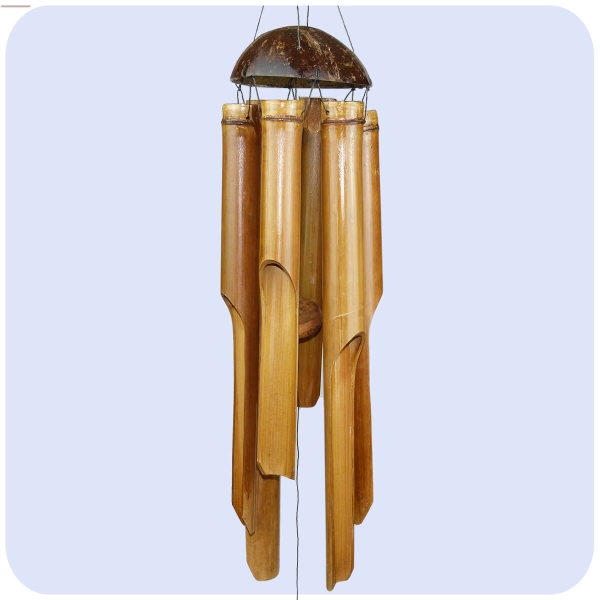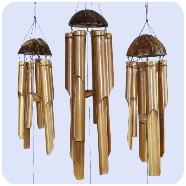 Einfach bezaubernd! Dieses handgefertigte Bambus-Windspiel aus Bali bringt pure Entspannung in deinen Garten oder Wohnraum. Das Motiv 'Kranich mit Kindern' ist besonders niedlich - die kleinen Vögel wippen mit den Köpfen bei jedem Windhauch. Mit 6 Bambus-Röhren die wunderschöne, erdige Töne erzeugen. Gesamtlänge ca. 100cm, größte Röhre 30cm - ein echter Hingucker. Perfekt für Feng Shui, Meditation oder einfach zur Entspannung. Jedes Windspiel ist ein Unikat aus natürlichen Materialien: Bambus, Holz und Kokosnussschale. Einfach aufhängen und dem sanften Klang lauschen. Ob an der Terrasse, im Garten oder im Wohnzimmer - dieses Windspiel schafft sofort eine harmonische Atmosphäre. Ein wunderbares Geschenk für alle, die Natur und Ruhe lieben. Hol dir ein Stück balinesisches Kunsthandwerk nach Hause!