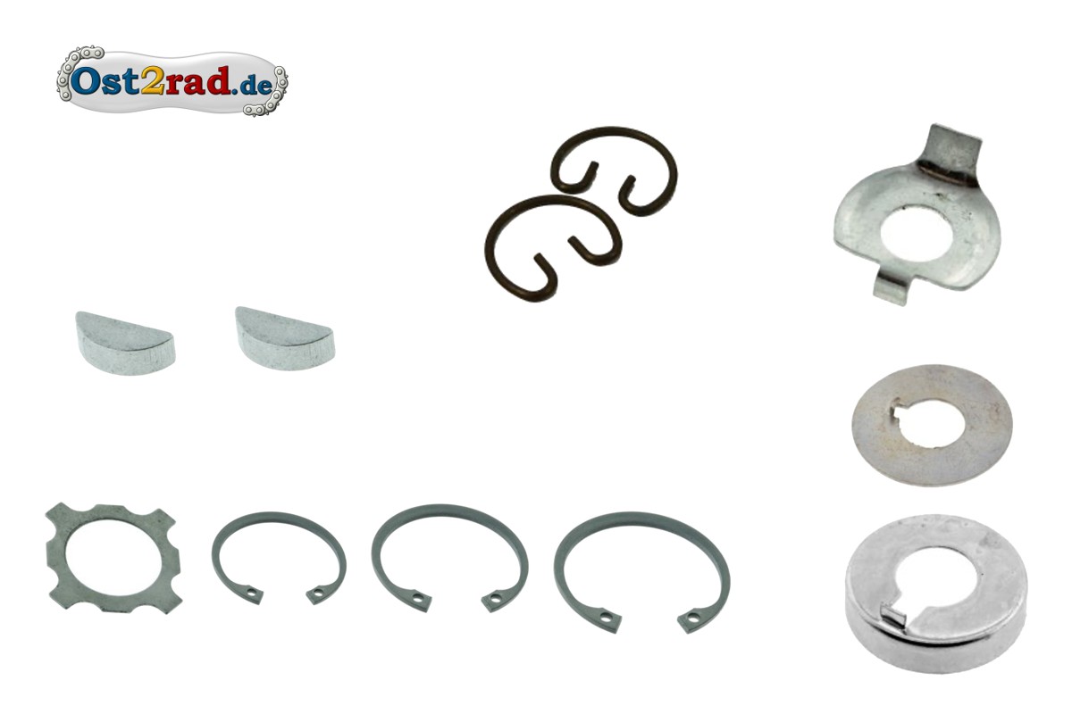 Damit dein Simson-Moped sicher läuft! Dieses Komplett-Set enthält alle wichtigen Sicherungsteile für die Motoren M52 bis M54. Enthalten sind Sicherungsringe in verschiedenen Größen (47mm, 40mm, 32mm, 15mm), Sicherungsbleche für Primärritzel, Kupplung und Kettenrad, sowie 2 Scheibenfedern für die Kurbelwelle. Passt perfekt für Simson S50, Schwalbe KR51/1, Spatz SR4-1, Star SR4-2, Sperber SR4-3, Habicht SR4-4 und DUO 4/1. Alles in einem Set - kein mühsames Zusammensuchen einzelner Teile mehr. Ob für die regelmäßige Wartung oder nach einer Motorüberholung - mit diesen Qualitätsteilen bist du auf der sicheren Seite. Ein Muss für jeden Simson-Fan und -Schrauber. Einfach einbauen und dein Moped läuft wieder rund!