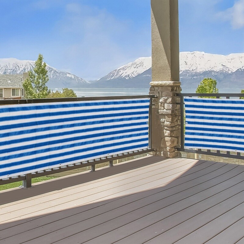 Endlich mehr Privatsphäre auf deinem Balkon! Dieser hochwertige Sichtschutz aus 160g/m² Polyester bietet 85% Beschattung und blockiert 95% der UV-Strahlung - dabei ist er zu 98% wasserdicht! Mit 1 Meter Höhe und 4,5 Metern Länge passt er perfekt zu den meisten Balkonen, Terrassen und Gartenzäunen. Die praktischen Edelstahl-Ösen im 50cm Abstand machen die Montage super einfach: Einfach mit den mitgelieferten Kabelbindern befestigen und schon genießt du ungestörte Stunden auf deinem Balkon. Besonders praktisch: Er schützt nicht nur vor neugierigen Blicken, sondern hält auch Haustiere sicher auf dem Balkon und reduziert übermäßiges Bellen. Das HDPE-Material ist wetterfest, alterungsbeständig und lässt trotzdem noch angenehm Luft durch. Tipp: Etwas lockerer befestigen, damit sich das Material bei Temperaturschwankungen natürlich ausdehnen kann!